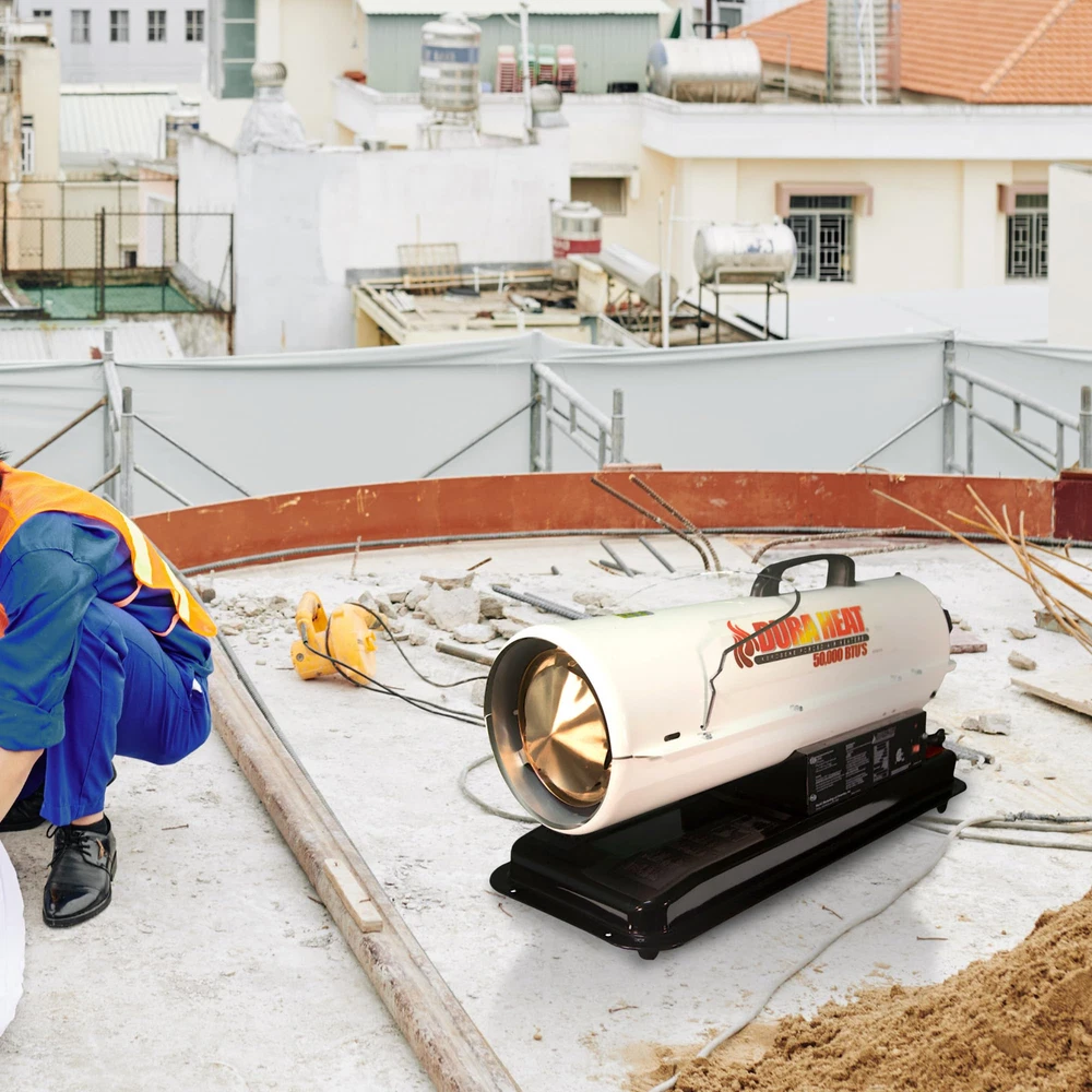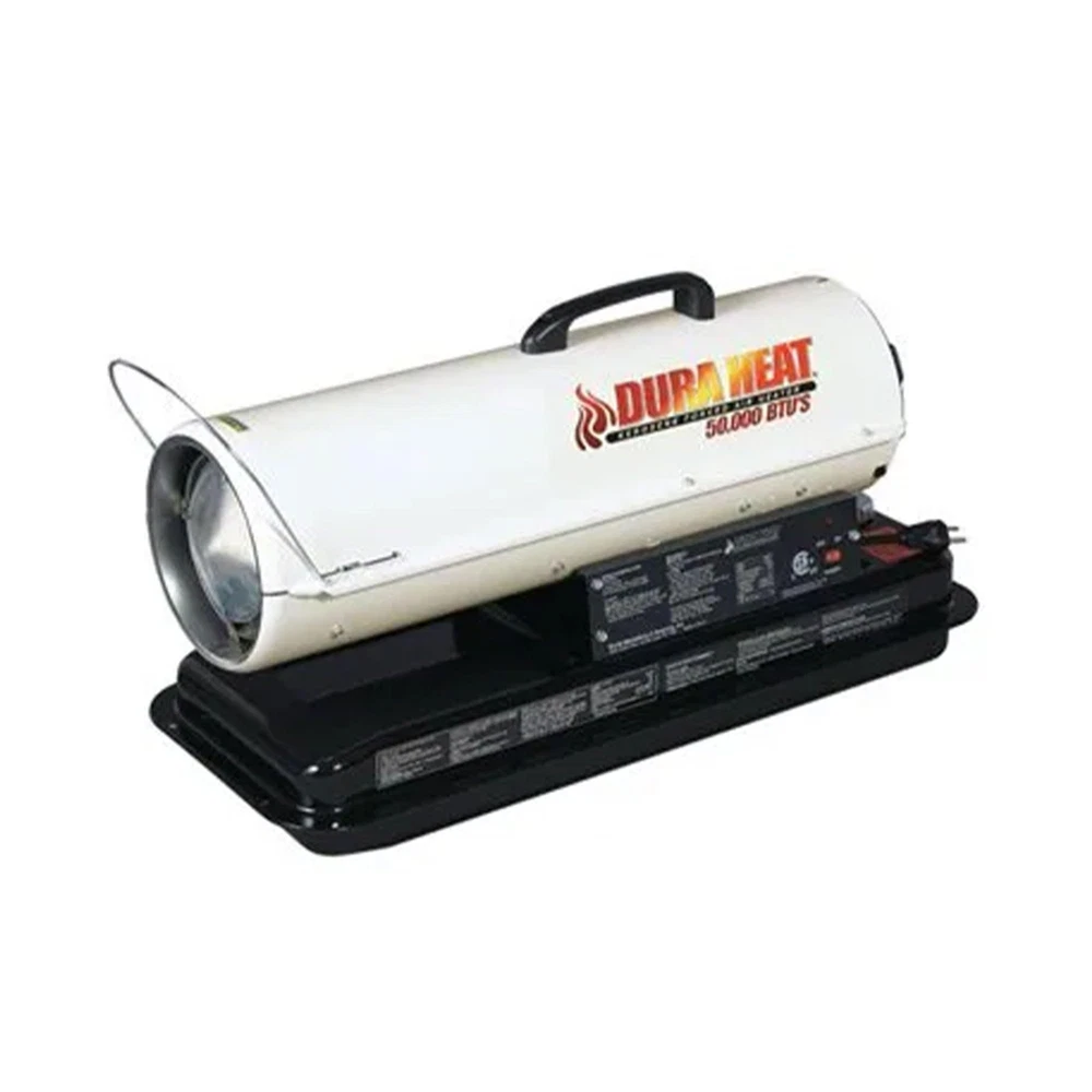 DFA50 is the perfect choice for temporary heating needs, light construction, garage work, or the do-it-yourselfer. Multi-fuel capable - tested with K-1 kerosene, #1 and #2 fuel oil and diesel, JP-8 and Jet-A fuels One-touch electronic start "Runtime" fuel gauges Fuse protected electrical system High capacity sealed fan motor; Heavy duty ignitor