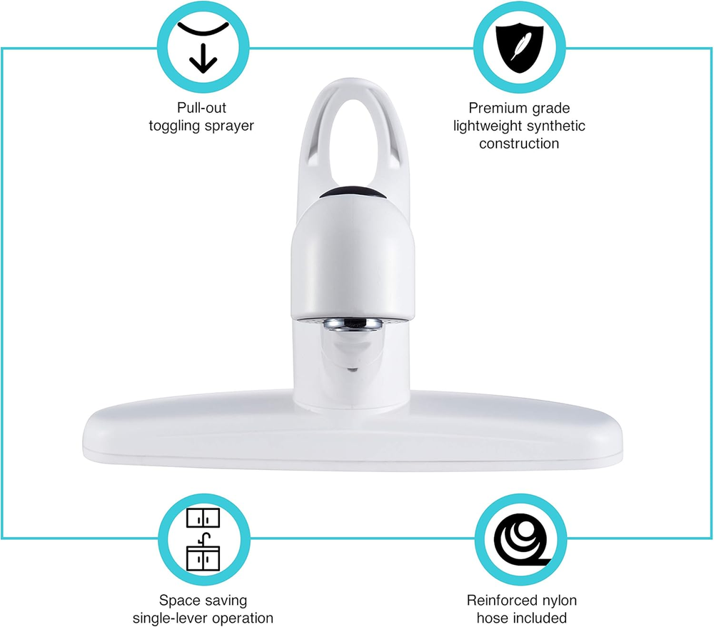 Store New Arrivals Add to Favorite View Feedback Contact DF-PK100-WT Non-Metallic Pull-Out RV Kitchen Sink Faucet, Single Handle (White) Description Item model number DF-PK100-WT Warranty Description 1 Year Spout Height 7 Inches Hole Count 1 Spout Reach 7 Inches Is Electric No Maximum Flow Rate 2 Gallons Per Minute Batteries Included? No Handle Location Center Batteries Required? No Finish Polished Product Dimensions 12.4 x 4.4 x 9.4 inches Material Nylon Installation Type wide_spread, mini_spread, single_hole_deck_mount, wall_mount, Single Hole Model Name DF-PK100-WT Finish Type Polished Item Package Quantity 1 Spout Design Straight Number of Handles 1 Item Weight 2.42 pounds Special Features RV Special Feature RV Part Number DF-PK100-WT Mounting Type Deck Mount Color White Is Discontinued By Manufacturer No Handle Type Lever Global Trade Identification Number 00810127820616 Handle Material Nylon Recommended Uses For Product Kitchen Included Components Handle, Sprayer Specifications | This faucet is 7 inches tall, and only compatible with RV kitchen faucets Flow rate is a powerful 1.8 GPM for those that are looking for powerful stream. This unit is lead-free- UPC- and CUPC-Certified. Dura Faucet is a proud American company with USA-based Customer Support, so you can trust that any issues will be resolved timely and accurately. Product description Features: - Ceramic disc valve - Single-lever operation - Pull-out toggling sprayer Why Choose Dura Faucet? - DIY Installation - American Company - Sturdy Lightweight Construction Dura Faucet RV Kitchen Pull-Out Faucet This kitchen faucet has a petite design without sacrificing strength! It features a pull-down sprayer and toggles between aerated and full spray. The single-lever operation is easy-to-use to fully control water temperature and pressure. Colors: venetian bronze, white, chrome, oil rubbed bronze, satin nickel ABOUT US We offer the best prices around on high quality products. Our E-store includes media such as books, movies, music and games while offering electronics, toys, sporting apparel, clothing, tools, general home, garden items and more. SHIPPING We are always working hard to ensure your package arrives as soon as possible. Please understand that some factors like weather, high postal traffic, and the performance of shipping companies are outside of our control. We offer free shipping to the lower 48 states and ship within 2 business days of payment, usually sooner. We do not accept P.O. Boxes. Please provide a physical address. For shipping outside of the continental USA, we only use eBay's Global Shipping Program.The item is shipped to KY and then sent to the rest of the world. International customers are responsible for all duties and taxes. Continue to check out in order to calculate costs for shipping the item to your country. Messages regarding eBay's Global Shipping Program MUST be directed at eBay EXCLUSIVELY. RETURNS We offer a 30-Day Return Policy on items which you are not completely satisfied with. You have the option for a full-refund or an exchange of the item. No returns are available on items shipped outside of the USA. PAYMENT We accept PayPal. CONTACT US This page content is yet to come Please ad us to your favorite seller and visit again later Thank You CUSTOMER SATISFACTION We try our very best to make sure every customer is completely satisfied. If there's a problem, message us! We're happy to help. WE ACCEPT Copyright © 2021 AutoDS. | All Rights Reserved