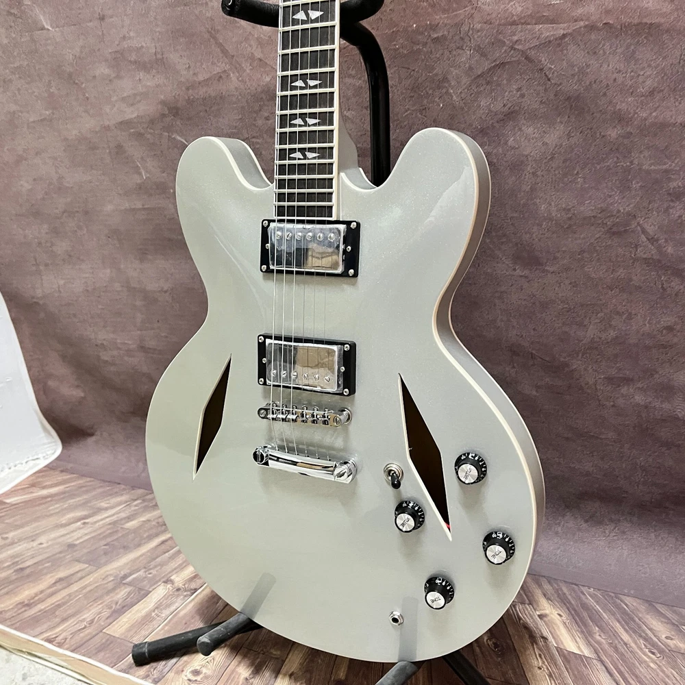 DG335 Style Semi-Hollow Electric Guitar with Maple Body & Silver Rhombic Hole