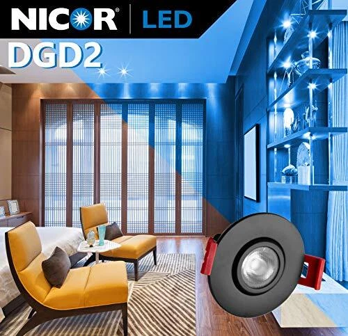 The DGD2 LED Downlight Gimbal features the latest in performance LED Downlight technology, designed to create an attractive visual aesthetic that's incredibly easy to install. The high-performance DGD2 is Dimmable and features a 90 CRI rating, with an R9 value exceeding 50, making it of the highest quality light fixtures on the market. Installation does NOT require a recessed housing or junction box, only a simple 2.125" diameter cut-out in the ceiling using the provided template. The elegantly designed fixture and off-board driver (included) allows for a more flexible installation and an increased lifespan thanks to the superior heat management system separated from the LED module itself. The DGD2 features adjustable spring-loaded retention tabs for a secure fit, eliminating the need for a recessed housing or junction box. Adding an adjustable, multi-directional light system to highlight artwork or architectural design features in your home just got easier. Freedom from having to use a housing or junction box allows this light to be installed in places others simply cannot. Available in Black, Nickel, Oil-Rubbed Bronze, and White. Choose from 2700K, 3000K, 4000K, or 5000K Color Temperatures. The DGD2 is Energy Star , Insulation (IC-), Title 24 Compliant, Damp-Location , and protected by 's 5-Year Limited . 2700K Color Temperature 356 Lumens 4.8-Watts Includes LED downlight module, plenum-cable, and off-board LED driver Includes 2.125-inch cut-out template