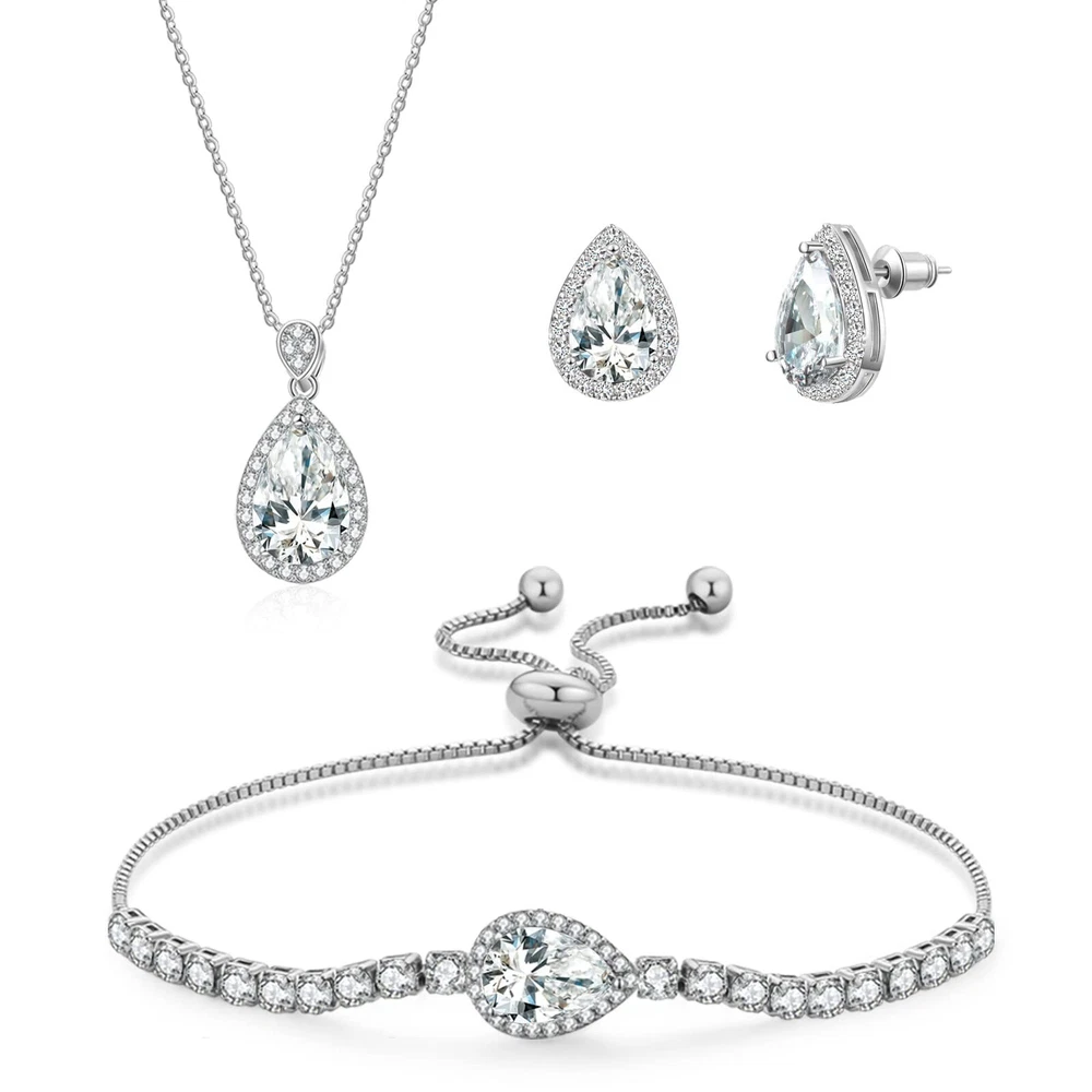 DHQH Cubic Zirconia Teardrop Necklace and Earring Set for Wedding with Crystal Link Bracelet Bridesmaids Jewelry Sets for Women Wedding Party Jewelry for Bridal Bridesmaid Product Details Color: A-Teardrop Jewelry-Silver Brand: DHQH MPN: Does not apply UPC: Does not apply EAN: Does not apply Department : womens Date First Available : February 24, 2022 Brand, Seller, or Collection Name: DHQH Metal: Copper Material: Copper Gem Type: Goldstone Clasp: Lobster Clasp Number of stones: 4 Bridesmaid Jewelry set Features: Easy to wear: Bridesmaid Teardrop necklace earrings and bracelet set is in quality material, and light to wear. After several days of accompanying the bride, you still not feel any burden on your neck or ears, giving you a comfortable wearing experience. Practical Bridesmaid jewelry set: The bridesmaid jewelry set for wedding is delicate and attractive, and you may give the set to your bridesmaids as souvenirs, then you both will remember the wedding and the happy time. Bridesmaid jewelry set Specifications: Material: copper/AAA Grade Cubic Zirconia Color: silver Quantity: 3 piece Size: as shown in the picture Package includes: 1 xBridesmaid Teardrop Bracelets 2 x Bridesmaid Teardrop Stud Earrings 1 x Bridesmaid Teardrop Necklace Notes: Manual measurement, please allow slight errors on size.The color may exist a slight difference due to different screen displays.To better maintain the jewelry set for wedding, please remove it before swimming, showering, or other water related activities.Small items included, please keep away from little children.