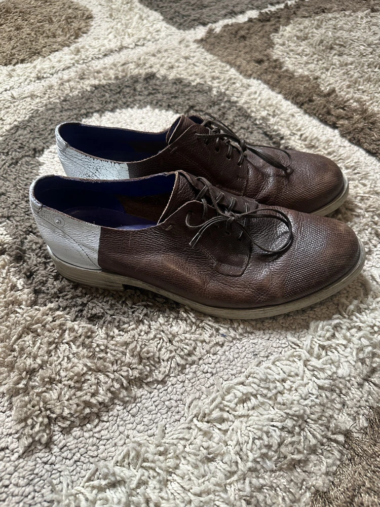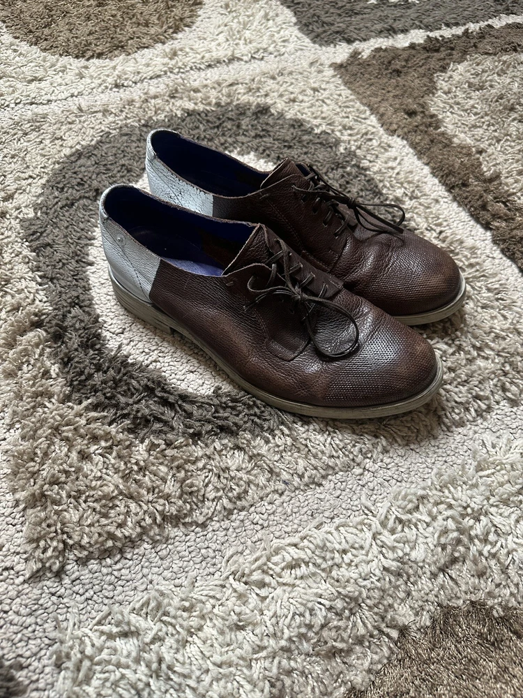 DIESEL BROWN COLOR BLOCK WHITE BROWN PERFORATED LEATHER TIP OXFORDS SHOES 43