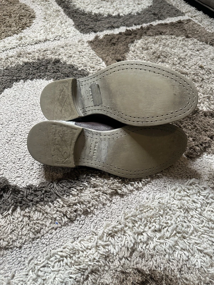 Type: Dress Shade: Dark Country/Region of Manufacture: Italy US Shoe Size: 10 Department: Men Pattern: Color Block Shoe Width: Medium (D, M) Dsigner Size: 43 Color: Brown UPC: Does not apply Upper Material: Leather Style: Oxfords gtin13: Does not apply Brand: Diesel