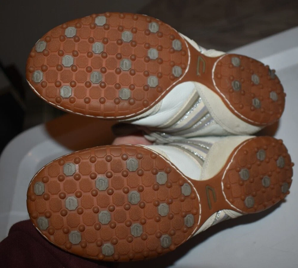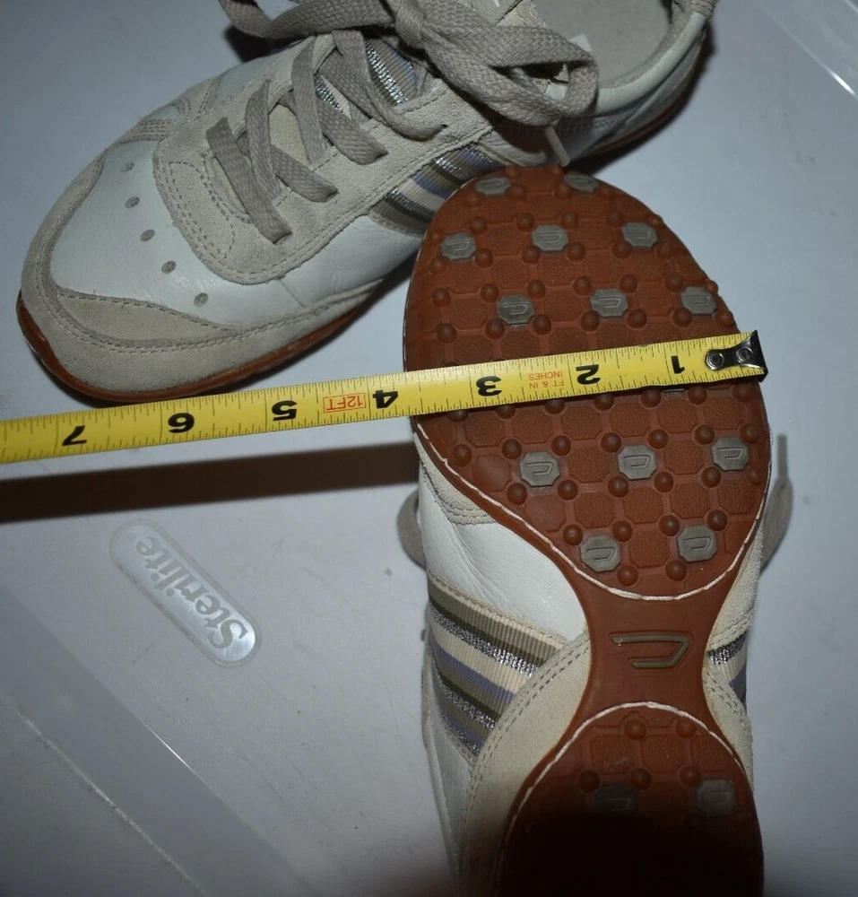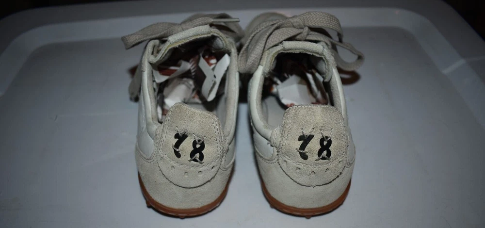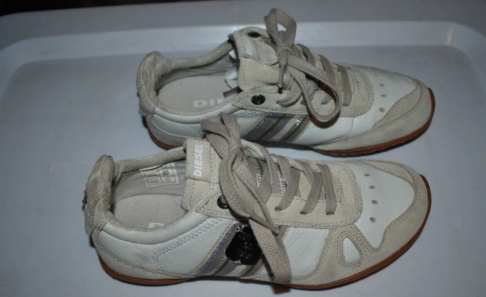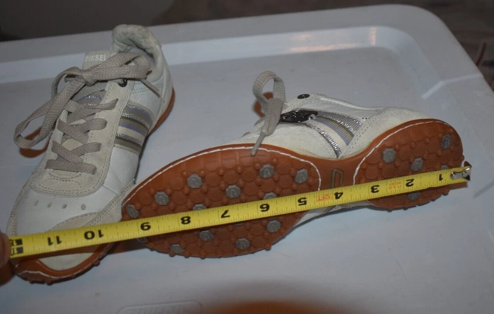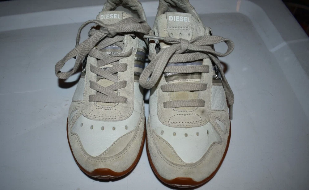 Elevate your casual style with these white Diesel Cheju 78 Suede Running Shoes in woman's size 6. The lace-up closure ensures a secure fit while the low-top shaft style gives you the freedom to move. The leather lining material and rubber outsole material provide comfort and durability for all-day wear. Perfect for summer, fall, and spring, these sneakers are versatile and can be worn on multiple occasions. The suede upper material and lace-up closure make them a stylish and functional choice for any woman who wants to look and feel great. Get ready to step up your shoe game with these Diesel Cheju Suede Running Shoes. Shoes have some wear and dirt not bad, good tread, these type of shoes are form fitting and on the narrow side for foot support. Packed well and shipped fast. See pictures for best details or message, thank you.