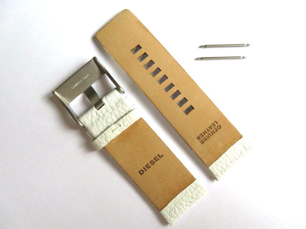 Watch strap original DIESEL Also fits other watches with a 28 mm bridge width. DIESEL: Model DZ7121 Material: Leather Color: White Bridge width: 28 mm Length of the closing side: 90 mm Length of hole side: 112 mm Clasp: Stainless steel pin buckle silver Scope of delivery: Band with two bars Watch strap original DIESEL Also fits other watches with a 28 mm bridge width. DIESEL: Model DZ7121 Material: Leather Color: White Bridge width: 28 mm Length of the closing side: 90 mm Length of hole side: 112 mm Clasp: Stainless steel pin buckle silver Scope of delivery: Band with two barsÂ