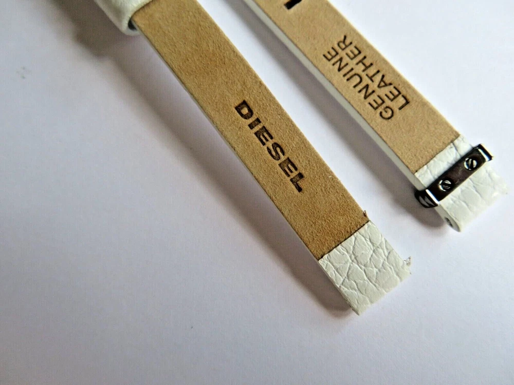 Watch strap original DIESEL Also fits other watches with a 10 mm bridge width. DIESEL: Model DZ5423 Material: Leather Color: White Bridge width: 10 mm Clasp: Stainless steel pin buckle polished black Scope of delivery: Band with two bridges Watch strap original DIESEL Also fits other watches with a 10 mm bridge width. DIESEL: Model DZ5423 Material: Leather Color: White Bridge width: 10 mm Clasp: Stainless steel pin buckle polished black Scope of delivery: Band with two bridges
