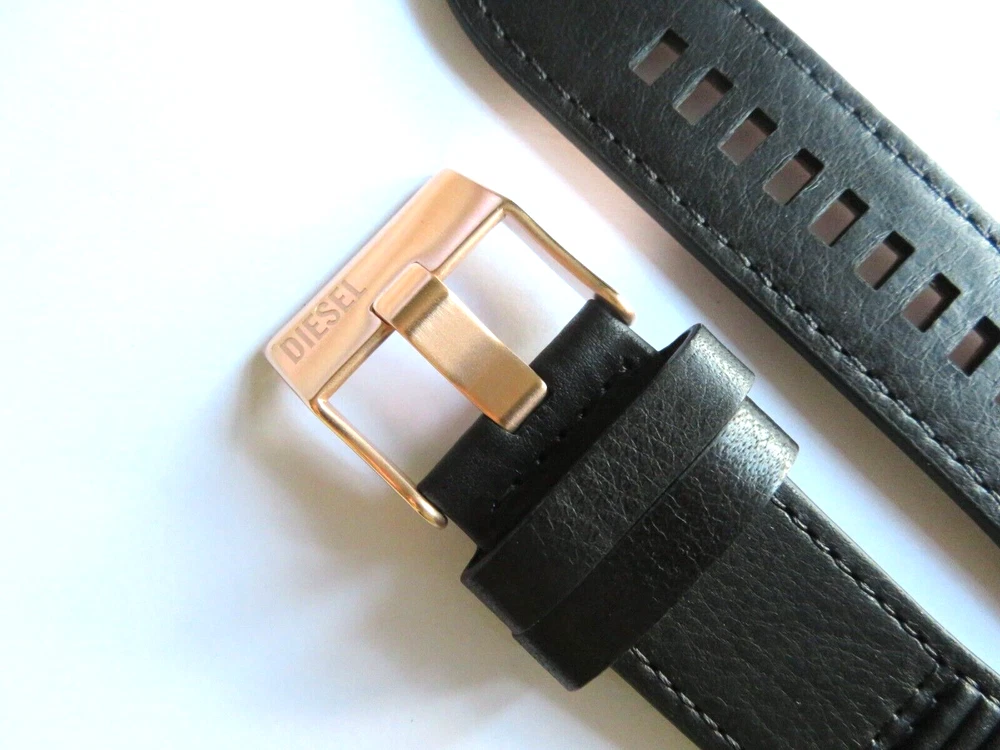 Watch strap original DIESEL Also fits other watches with 24 mm lug width. DIESEL: Model DZ7475 Material: Leather Color: Black Bridge width: 24 mm Clasp: stainless steel pin buckle rose gold matt Scope of delivery: Band with two bars Mass: 1-bridge width: 24 mm 2-Band length closure side: 90 mm 3-Band length hole side: 115 mm Watch strap original DIESEL Also fits other watches with 24 mm lug width. DIESEL: Model DZ7475 Material: Leather Color: Black Bridge width: 24 mm Clasp: stainless steel pin buckle rose gold matt Scope of delivery: Band with two bars Mass: 1-bridge width: 24 mm 2-Band length closure side: 90 mm 3-Band length hole side: 115 mm