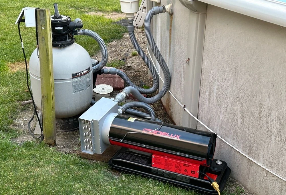 Quick install Diesel Heater . HEATER NOT INCLUDED This version is the heat exchange in main photo only . The other photos are for illustration . The fittings and hose needed are included . If you already own a dyna glow or similar burners this option will work for you . Heats 14,500 gallon pool from 79 to 85 in 11 hours . Keeps pool temp maintained at night and keeps pool comfortable in cloudy cool weather . Just disconnect your pump discharge line and connect it to the heater and connect the heater hose to the pool water jet and ypur install is done . No hard lines or gas lines needed . Just plug in with an extension cord . 250,000 BTU This system has bin boosted so the fuel gauge time reading will not give an accurate indication of time left in the tank . The burners are turned up to crank out more power than the label on the burner depicts . That is why it may say it has only 7 hours left in the tank but you really only have about 3 hours due to the higher fuel consumption . If you want a bigger output just email me and we can send you a link or modify your order if its an offer Copy and paste link to see it in action https://youtu.be/4EDY-F1vhWI
