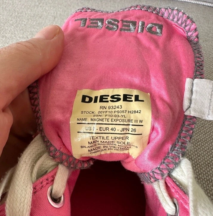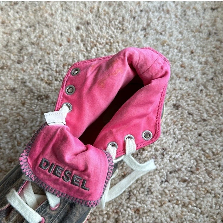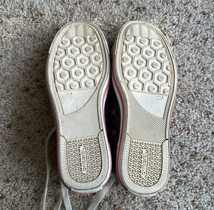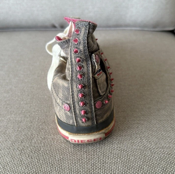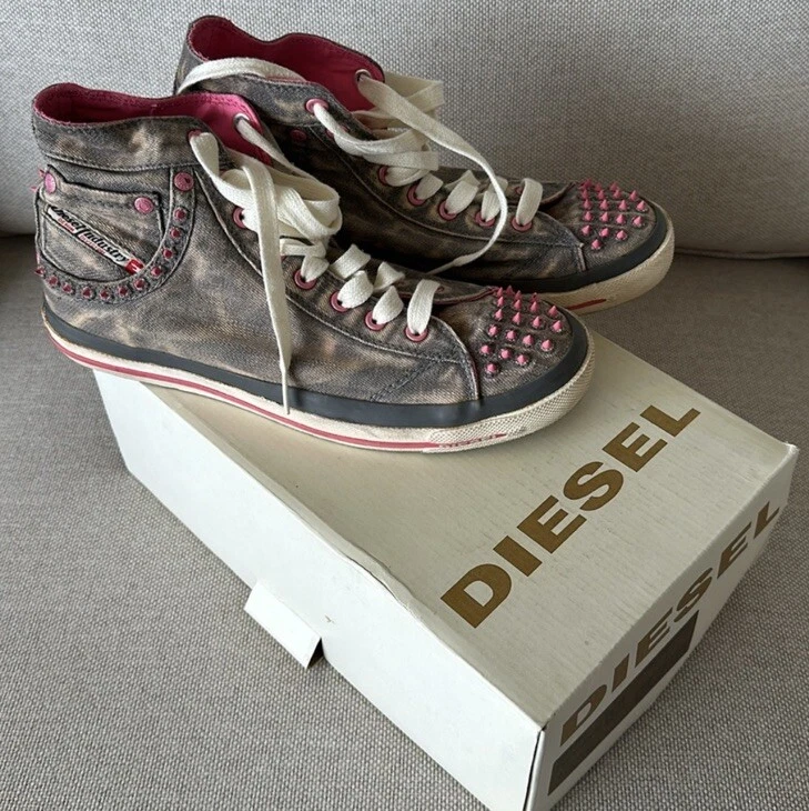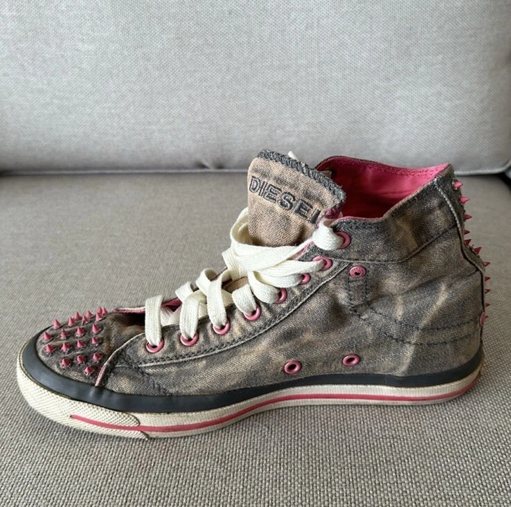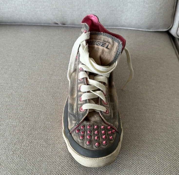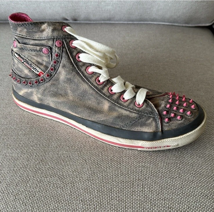 DIESEL Spiked Shoes Size US 9 Comes with extra set of pink shoe laces Has glue residue from label sticker on the inside.