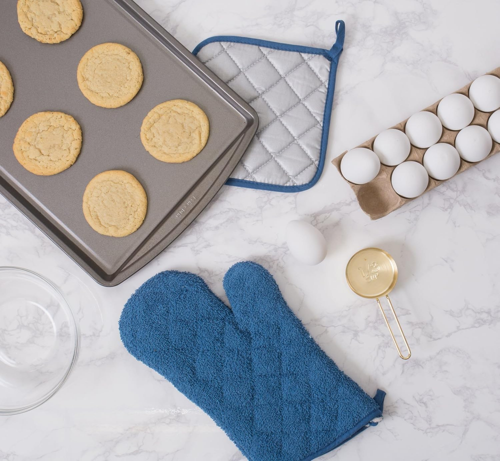 FOR YOU DII Basic Terry Collection Quilted 100% Cotton, Potholder, Blue, 3 Piece FEATURES Cotton QUALITY PRODUCT: Our pot holders and oven mitt sets are 100% cotton, quilted and padded adding durability and are heat resistant; Use to remove hot pots and pans from the oven, a baking dish from the microwave oven and cooking on your stove top HANGING LOOP FOR EASY ACCESS: Set of 3 pot holders, each measure 7 x 7 inch square; Use as hot pads for hot dishes, coffee pot, hot pot, cast iron or cooking pot. Protect counter tops from scratches, place mat under heavy cast iron set PROTECT YOU FROM HEAT: Heat resistant up to 400 degrees allowing safe removal of baking dishes and cast iron from the oven and hot pots from the stove; Stay safe - Do not use potholders or oven mitts in a hot oven or over an open flame GREAT GIFT CHOICE: Pot holders, hot pads and oven mitts are apartment essentials, make great hostess gifts, housewarming gifts and camping accessories; Pair with cooking utensils, kitchen utensil set and dish towels for a fun and thoughtful gift CARE TIPS: Pot holders and oven mitts are machine washable, durable and long lasting with daily use; Wash in Cold Water on Gentle Cycle & Tumble Dry Low; So many color options make coordination with kitchen accessories and dish towels easy and fun MORE DII KITCHEN POT HOLDERS OPTIONS - DII offers delightful Kitchen Linens including dishtowels, dish cloths, aprons, potholders and oven mitts, but for more options search: DII Pot holders or click the DII link at the top of the page to explore our other collection. DII offers full collections of trend based designs, bringing you fresh, innovative lines of quality home products for every season. Let DII products become a valuable part of your life. Item model number CAMZ75307 Global Trade Identification Number 00738215753076 Warranty Description Not applicable. Product Dimensions 7"L x 7"W Number of Pieces 3 Color Blue Brand DII Country of Origin China Shape Square Item Weight 4.8 ounces Batteries required No Outer Material Cotton Fill Material Cotton Manufacturer Excello Brio Refill Cotton Size Potholder Is Discontinued By Manufacturer No Fabric Type Cotton Product Care Instructions Machine Wash Colors Separately • Cold Water • Gentle Cycle • No Bleach • Tumble Dry Low Included Components Pot Holders 7.0 "w x 7.0 "w. Weight: 4.8 oz PAYMENT We accept all payments via Ebay using Credit Cards , PAYPAL , Apple Pay and many others SHIPPING We are always working hard to ensure your package arrives as soon as possible. Please understand that some factors like weather, high postal traffic, and the performance of shipping companies are outside of our control. DELIVERY & RETURN POLICY We offer a 30-Day Return Policy on items in which you are not completely satisfied with. You have the option of a full-refund or an exchange of the item. No returns are available on items shipped outside of the USA.
