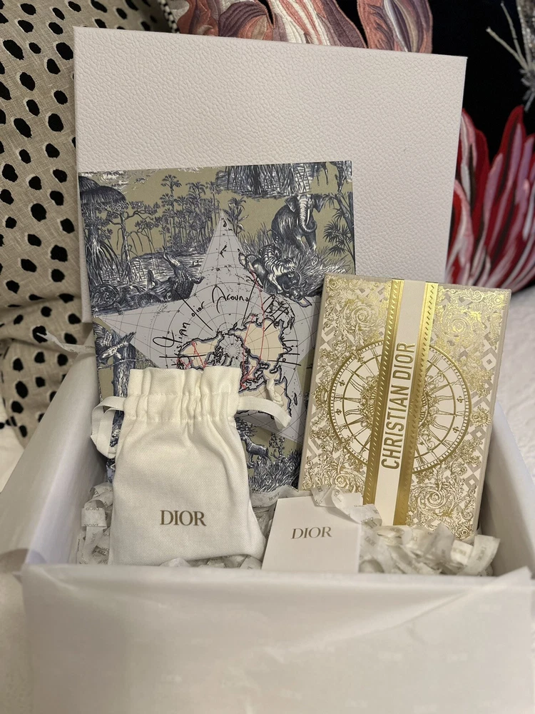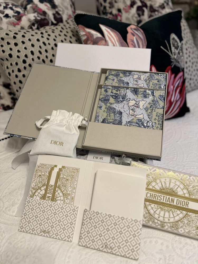 DIOR Gift Set Notebook & Pencils, Letter Set AND Samples Limited Edition Around the World 2024 Dior Gift Set Notebook & Pencils Limited Edition Around The World 2024. Exclusive Stationary Set Dior Gift Set Notebook & Pencils Limited Edition Around The World 2024. The set is sealed and has never been opened. You receive the items below in the sealed set. Smoke-free and pet free home. *Dior Gift Set Notebook * Pencils * Magnetic Gift box - Limited Edition Also included: Dior Paper Letter Set Dior gift pouch and samples AND DIOR Gift Box!!! Includes Dior packaging ribbons as shown in the box.