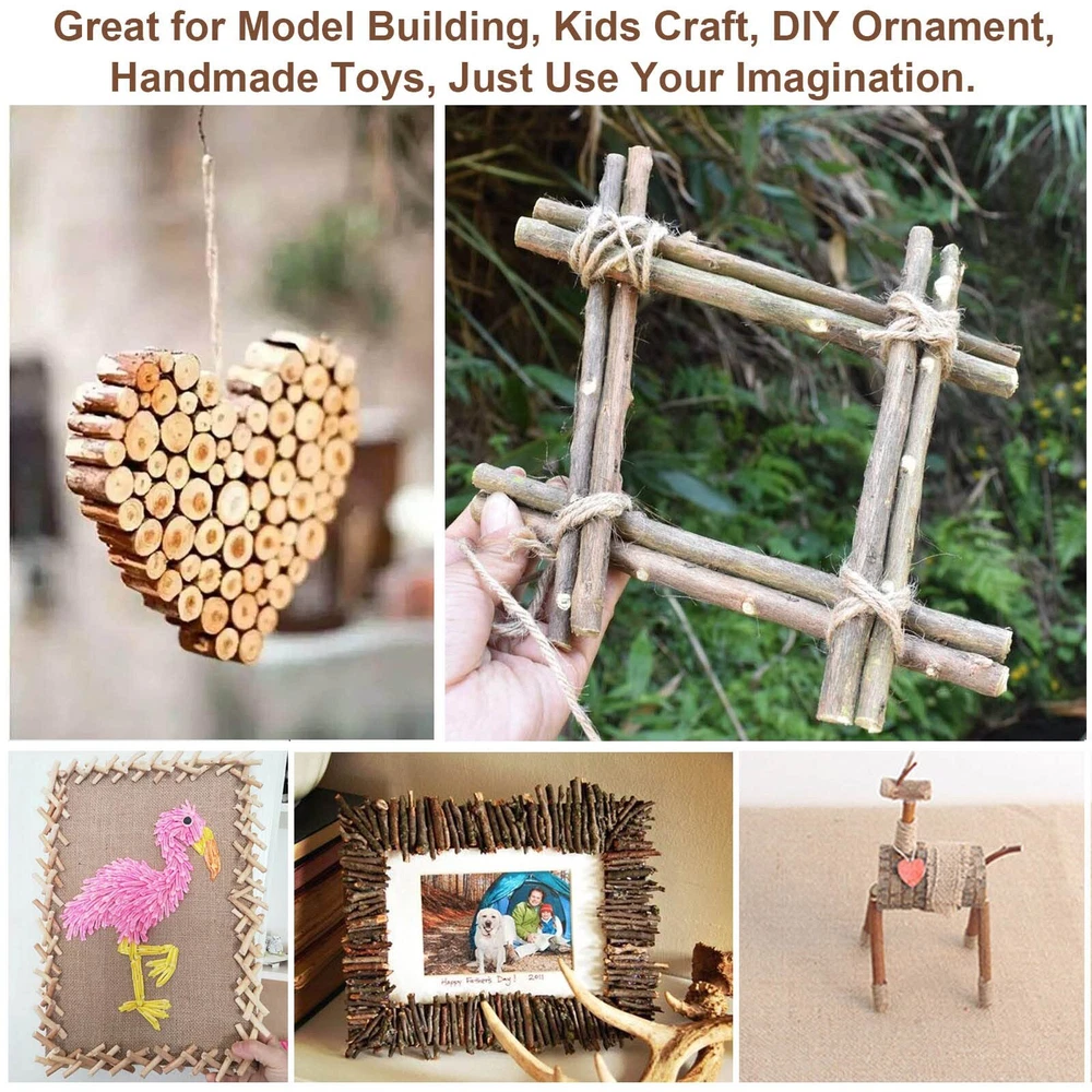 100pcs of natural wood sticks for DIY Crafts, Floral projects, Photo Props Excellent DIY Materials: You can use it to decorate photo frames, pen holders and flower pots. also can help make Christmas craftworks, complete school handicraft projects, make gifts for friends and relatives Features: Color: Wood color Material: natural wood Diameter: approx. 0.4-0.6 inch Length: approx. 4 inch Warm Tips: Please check the size and the suitable occasions of these items before purchase; Please allow slight errors in size because of manual measurement. Package Including: 100 pcs x 4 inch Long Wood Log Sticks for Crafts Compare with other 40/60/80pcs mini sticks, our 100pcs sticks for crafting can save much your money The Craft sticks for DIY length is 4 inch long, 0.4-0.6 inch in diameter. The wood sticks for crafts have neat, smooth cuts, and the bark covers the outside, plain and undecorated, and they are a vital part of any crafting kit. Purely natural wood, environmentally friendly materials, free of chemicals that make them safer for adults and kids. The sticks for crafting are very suitable for DIY Crafts, Floral projects, Photo Props, School Projects, Fairy Gardens, and Christmas ornaments