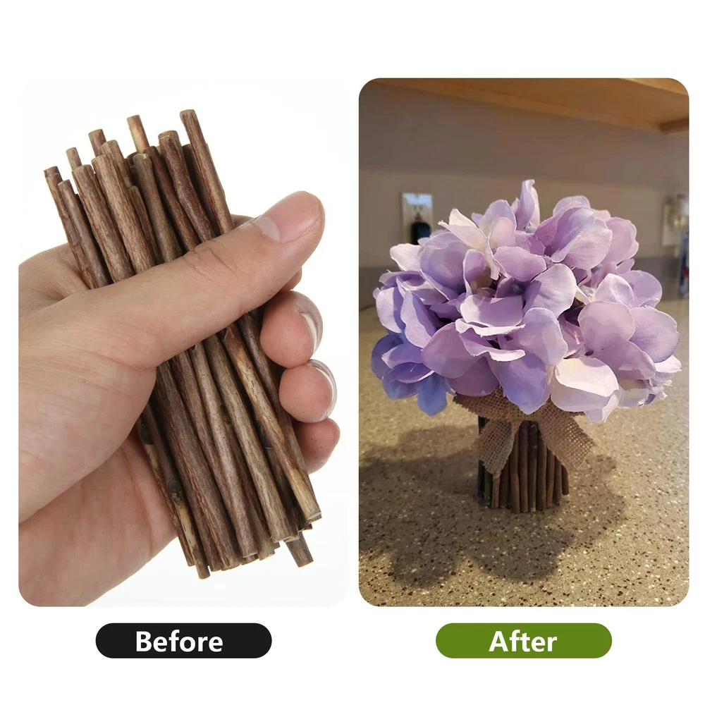 300pcs of natural wood sticks for DIY Crafts, Floral projects, Photo Props Excellent DIY Materials: You can use it to decorate photo frames, pen holders and flower pots. also can help make Christmas craftworks, complete school handicraft projects, make gifts for friends and relatives Features: Color: Wood color Material: natural wood Diameter: approx. 0.08-0.15 inch Length: approx. 3.7-3.9 inch Warm Tips: Please check the size and the suitable occasions of these items before purchase; Please allow slight errors in size because of manual measurement. Package Including: 300 pcs x 4 inch Long Wood Log Sticks for Crafts 300 pack Wood Log Sticks: Compare with other 50/100/200pcs sticks, our 300pcs Wood Log Sticks can save much your money and time The wood log sticks for DIY length is 4 inch long, 0.08-0.15 inch in diameter The wood sticks for crafts have neat, smooth cuts, and the bark covers the outside, plain and undecorated, and they are a vital part of any crafting kit Natural Materials: Purely natural wood, environmentally friendly materials, free of chemicals that make them safer for adults and kids Widely Application: The sticks for crafting are very suitable for DIY Crafts, Floral projects, Photo Props, School Projects, Fairy Gardens, and Christmas ornaments