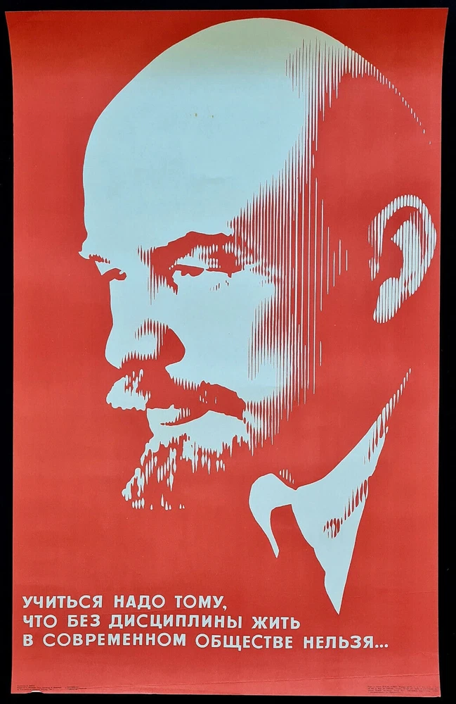 Original slogan on the poster: УЧИТЬСЯ НАДО ТОМУ, ЧТО БЕЗ ДИСЦИПЛИНЫ ЖИТЬ В СОВРЕМЕННОМ ОБЩЕСТВЕ НЕЛЬЗЯ... Literally English translation: YOU SHOULD LEARN THIS WAY, THAT WOULD BE ABLE TO LIVE IN A MODERN SOCIETY WITHOUT DISCIPLINE IT IS NOT POSSIBLE! POSTER ARTIST: PUSS K. PRINT YEAR: 1984 SUBJECT: LENIN PHRASE LANGUAGE: RUSSIAN PRINT RUN: 100.000 PUBLISHED BY: "PLAKAT", MOSCOW SIZE: IN: 22 x 34 ¼ = CM: 55 x 87 CONDITION: ROLLED, VERY GOOD The poster is in a very good shape. Before your bid please consider the poster condition from attached pictures and text description, if you still need more information please feel free to require additional pictures or video, it would be my pleasure to assist you with any questions regarding this auction. Shipping rolled in a hard plastic tube. www.facebook.com/sovietartposters Listing and template services provided by inkFrog