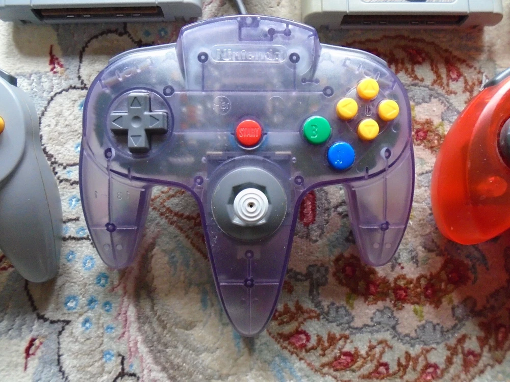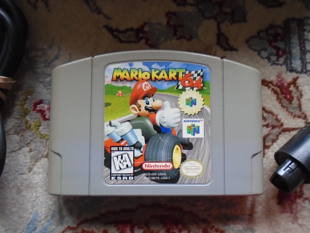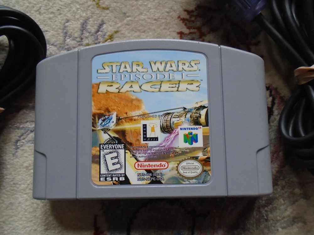 Video game bundle includes: Nintendo 64 Console NUS-001 2 Nintendo brand controllers (joysticks work great - read below) 2 Third-party brand controllers (joystick also works great!) Necessary OEM cables (Nintendo brand power cable and composite audio/video cables) 2 authentic, original games included: Mario Kart 64 Star Wars Episode I: Racer Functionality and Cosmetic Condition: Everything is fully tested and it all works perfectly! The joysticks work great, with a little bit of give on the Nintendo ones. The items are in fair to good to excellent used condition, with some signs of wear on Mario Kart and some nicks on the orange controller. The items come from a smoke-free, pet-free home. The photos are of the actual items being sold. We only accept returns if the items were not described correctly. Thank you for viewing our auction and good luck bidding!