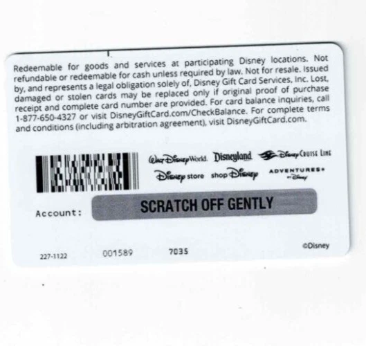 DISNEY Empty Collectible Gift Card This card has NO VALUE - for collecting only - NOT FOR USE AS A GIFT CARD NOTE : I do NOT believe you can add money and use - for Collecting Purposes Only PLEASE NOTE: *** The shipping price (75 cents) is for regular USPS 1st Class Letter in a flat mailer. USPS can be slow (up to 10 days and there is NO tracking). If you would like USPS Package rate with Tracking, there is an additional $3.25 charge. Please let me know prior to payment so I can make the adjustment to the cost. I will combine shipping. Please request an invoice prior to payment. I can offer the best combined shipping discount when one payment is made, otherwise, I pay some additional Paypal and Ebay fees for multiple payments. I Combine Shipping ! Domestic Shipping for each additional card is just 25 cents. *** I have lots more Disney and other gift cards for sale - be sure to click on - SELLER'S OTHER ITEMS ***