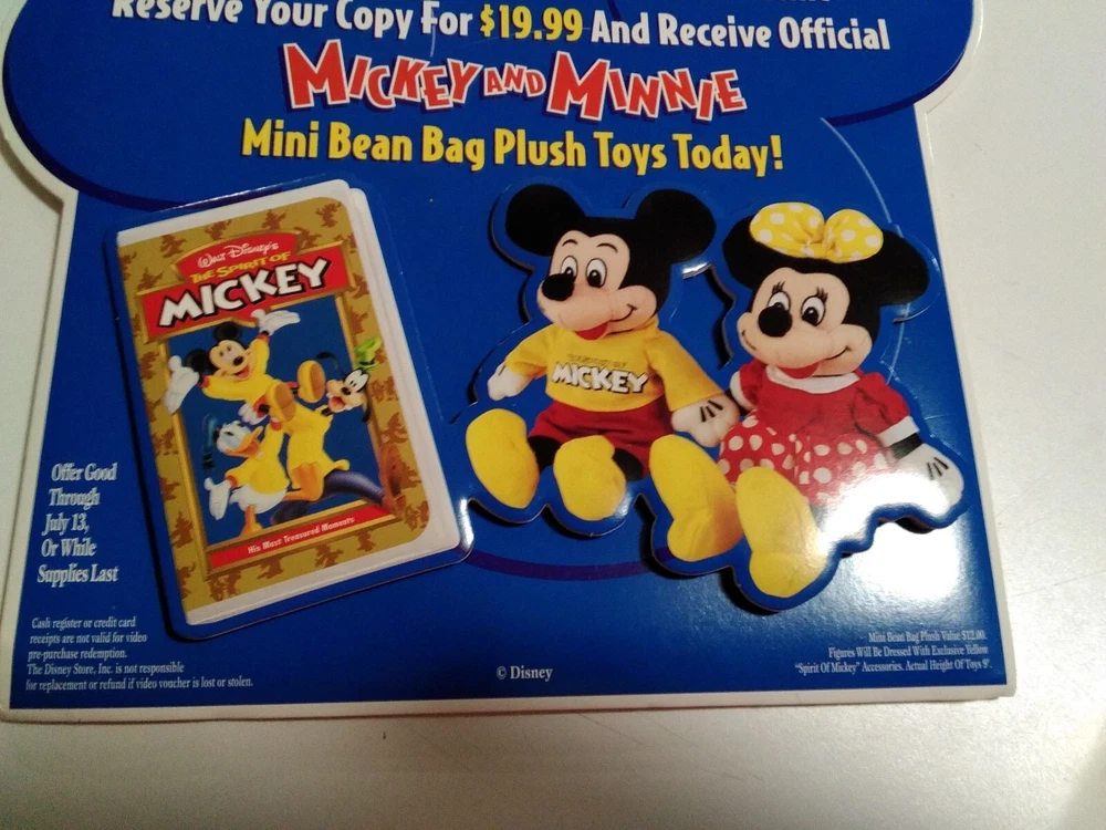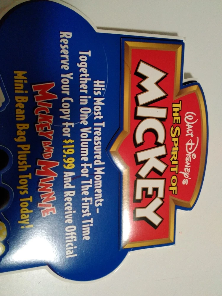 THIS IS A VINTAGE 1990S DISNEY STORE PROMOTIONAL ADVERTISEMENT FEATURING MICKEY MOUSE IN BEAUTIFUL COLORS AND IN 2- D. IN MINT PERFECT CONDITION. THIS PROMOTIONAL BOARD WAS NEVER USED AND THE BACK STAND PROP WAS NEVER OPENED. SUPER RARE TO FIND A DISNEY STORE PROMOTIONAL ADVERTISEMENT AND IN THIS PRISTINE CONDITION ALMOST NEVER HEARD OF. ADD THIS COLORFUL DISNEY ADVERTISEMENT TO YOUR COLLECTION TODAY. THIS BOARD IS 13 INCHES HIGH AND 10 INCHES WIDE AND HAS THE 2- D DIMENSIONAL ASPECT WHICH MAKES IT EVEN MORE UNIQUE.