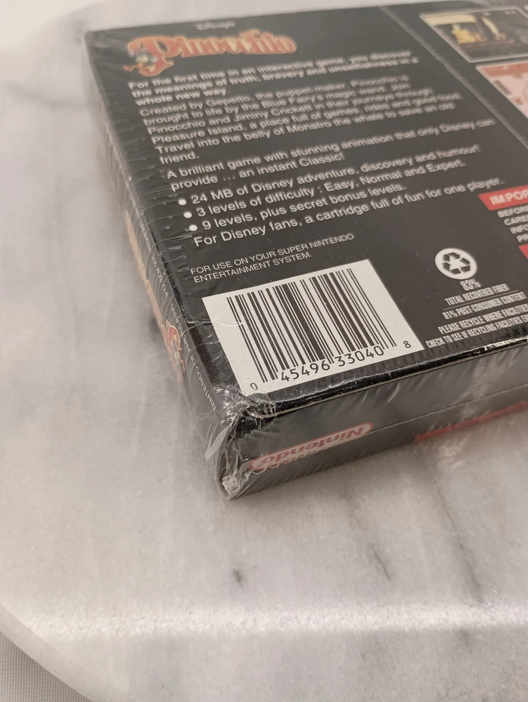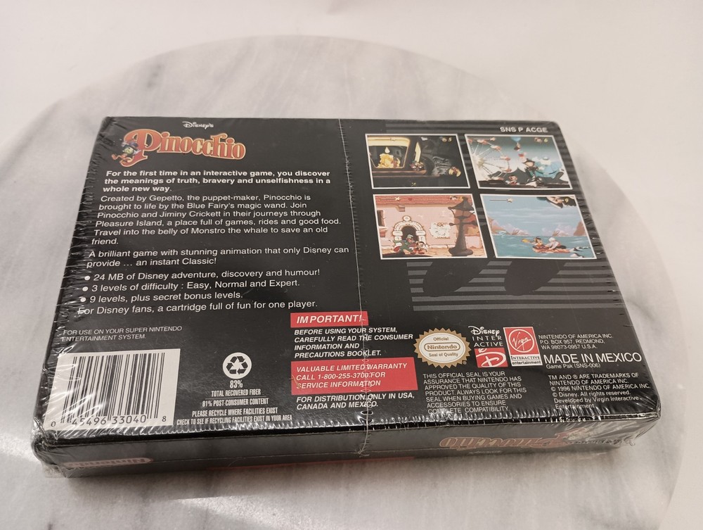 Experience the magic of Disney's Pinocchio with this new and sealed Super Nintendo game. Released in 1996, this classic platformer features all your favorite characters, including Jiminy Cricket, Cinderella, and of course, Pinocchio himself. Join the adventure and explore the enchanting world of Disney's Pinocchio, all while battling evil villains and collecting gems along the way. Perfect for any Disney fan or video game collector, this game is ready to bring joy and nostalgia to any collection. With its NTSC-U/C region code, this game is perfect for gamers in the US and Canada. Don't miss your chance to own a piece of Disney's magic with Disney's Pinocchio for the Nintendo SNES. Thank you for visiting my listing today and thank you for your interest in this item! My goal is to have a pleasant transaction resulting in a satisfied customer. I hope any transaction between us leaves you with a feeling of confidence knowing you can trust me and the items I offer here. *Most if not all my listings are set to accept offers. Feel free to send an offer and I will be happy to consider it!! *Please contact me with any questions or concerns and I will be happy to help. *Always examine the photos carefully, and if in doubt, email me with any questions you may have. *Please note that condition statements are offered as a guide only. They will always be somewhat subjective and reflect our opinion, which may not necessarily agree with someone else's opinion. PLEASE READ: I aim to please and I want my buyers to have a positive transaction with me. If you have questions, concerns, or special requests related to any of my items I hope you will contact me so we can work them out to your satisfaction. I sell my items to give you a great item at a decent price while making a little profit at the same time. If you feel the item you are interested in is too pricey do not hesitate to send me a fair offer and I will consider it. My goal is to satisfy your needs and mine so both parties can benefit. SHIPPING: If you prefer a different shipping method or company please contact me and I will do all I can to make that happen. If you have concerns or requests about the packaging of your item contact me and I will do all I can to accommodate them. Shipping costs are based on location in each state or country, the costs always differ. After I have received your payment I will ship your item out within 3 business days or less excluding weekends and holidays. BEFORE PURCHASING & BIDDING: **Please see all the pictures. I do not have great photography skills but I try to get the most accurate photos I can. If you are unsure about something you see in a photo contact me so I can do what I am able to answer your concern about the item. **I cannot stress enough that if you have any questions or concerns please contact me before purchasing and bidding. Communication can solve so much. **As a customer myself, I understand the meaning of customer satisfaction and my goal is to have nothing but satisfied customers. If you are not unsatisfied with your purchase I ask that you please contact me so I can take care of your issue. My goal is for you to be 100% satisfied. INTERNATIONAL BUYERS WELCOMED - PLEASE NOTE: I welcome International buyers! Please be aware that any custom/duties/taxes that the parcel might incur once it is out of the USA are the responsibility of the buyer. Please check with your country's customs office to determine what these additional costs will be prior to bidding or buying. Please refer to the eBay Site Map for more information if needed.