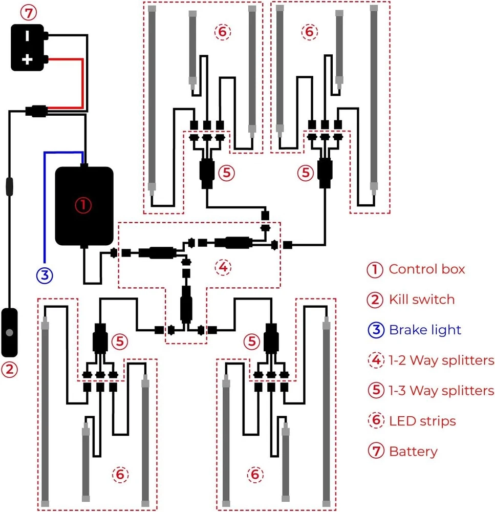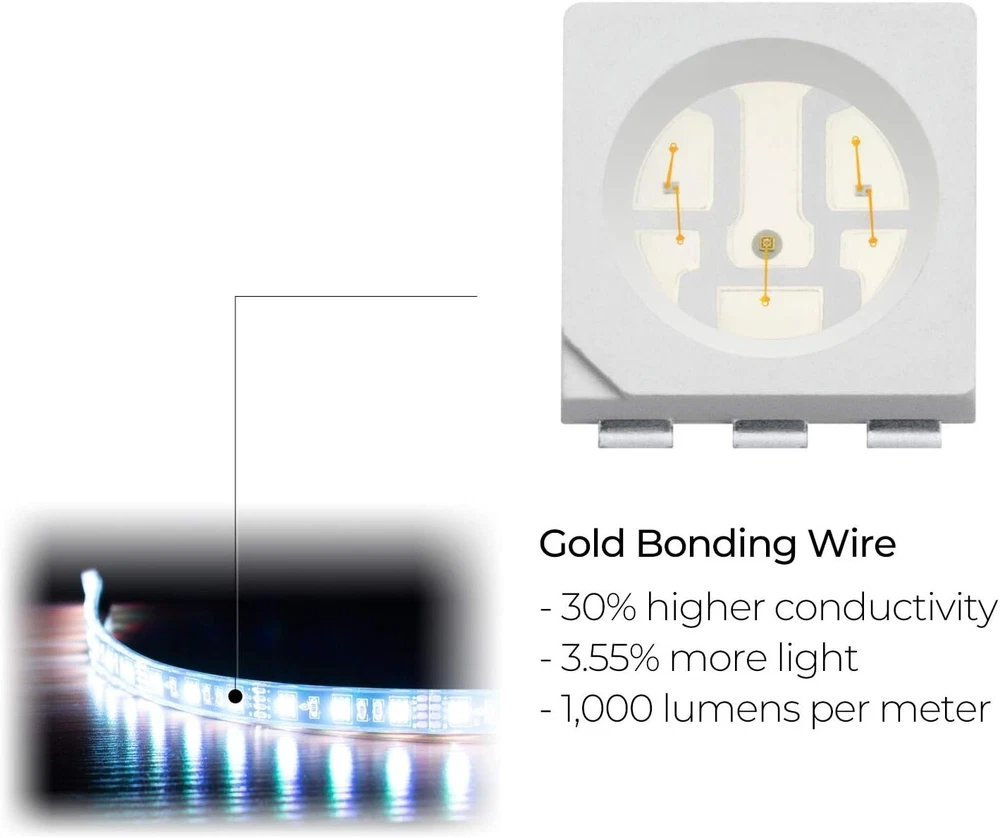 Quality & Reliability as Priorities: LED strip kits for motorcycles have difficult working conditions – fluctuating voltages, instantaneous higher currents etc., this LED strip kit focuses on how to make it work and last Maximum Brightness: LEDs with gold bonding wires – 30% higher electrical conductivity, 3.55% more light than the cost-effective material copper; 60 LEDs per meter, up to 1,000 Lumens per meter Bigger Capacities for Brighter Bikes: 3 x 3A big MOSFETs, wires of AWG 22 & 24, ensuring strips more than enough power supply even you double the strips for a bright “Christmas tree” 2 Additional Blinking Brake Lighting Styles: Besides the default solid red light as an additional brake signal, M12r now comes with 2 blinking styles, available via the 24-key remote Music Mode: An independent microphone in the control box, gold-plated pins, a 60X sensitivity, beautifully follows the rhythms of your music