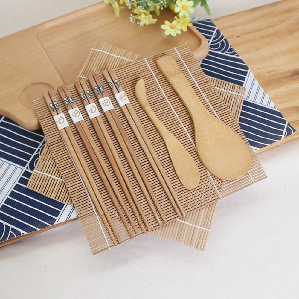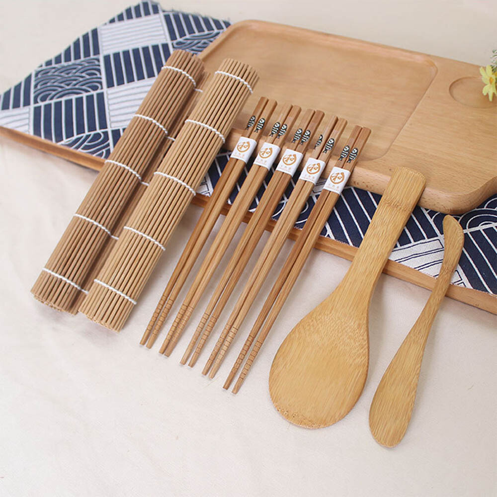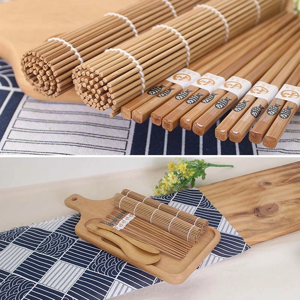 DIY Bamboo Sushi Kit with 2 Rolling Mats 5 Chopsticks Rice Spreader