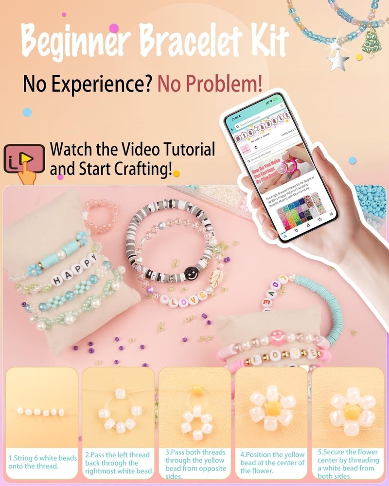Bracelet Making Kit 6 Box 9000PCS Clay Beads 5000PCS Glass Seed Beads Jewelry Age Range (Description): Kid Color: 6BOX Mix Beads Theme: Friendship Bracelet Making Kit Cartoon Character: Friendship Bracelet Making Kit RICH BEAD ASSORTMENT:15,000+ Beads for Endless Creativity: This all-in-one bracelet-making kit includes 72 vibrant colors of clay beads and 24 bold colors of 3mm glass seed beads, offering limitless possibilities for your artistic exploration. UNLEASH YOUR CREATIVITY WITH UNIQUE CHARMS: Featuring over 1,250 special beads, including letter beads, hearts, evil eyes, smiley faces, stars, squares, and exclusive Mermaid Charm DIY beads, this kit is perfect for creating personalized and stylish jewelry pieces that stand out. PREMIUM QUALITY & BEGINNER FRIENDLY: Made from high-quality, safe, and fade-resistant materials, these beads are lightweight, durable, and comfortable to wear. Designed with beginners in mind, this kit is perfect for making bracelets, necklaces, earrings, keychains, and more—whether you’re crafting for fun or giving as a gift. THE PERFECT GIFT TO SPARK JOY: Packaged in a stylish gift box, this bead kit makes an unforgettable gift for Christmas, birthdays, parties, family gatherings, school events, or any special occasion. Whether for kids, teens, or adults, it’s a creative gift that inspires imagination and fun. DEDICATED CUSTOMER SUPPORT: We prioritize your crafting experience and are here to assist with any questions, ensuring your satisfaction and success. Return Policy: We offer a 30 day return policy from the receiving date. Please contact us for a Free Return Label. Please use our return label so it will go back to our supplier and we can do a refund or replacement afterwards. Feedback: Your satisfaction is very important to us! If you have any problem with your order, please contact us and we will do our very best to make you satisfied. As long as you are happy with your purchase, please leave a positive feedback for us. We will always leave you a positive feedback in return. If you have any problem with your purchase, please do not leave a negative feedback. Please Contact us ... and your issue will be solved quickly and positively We are a small family-owned business trying to make a living, not a huge company that does not care ... We will ALWAYS do our best for you!