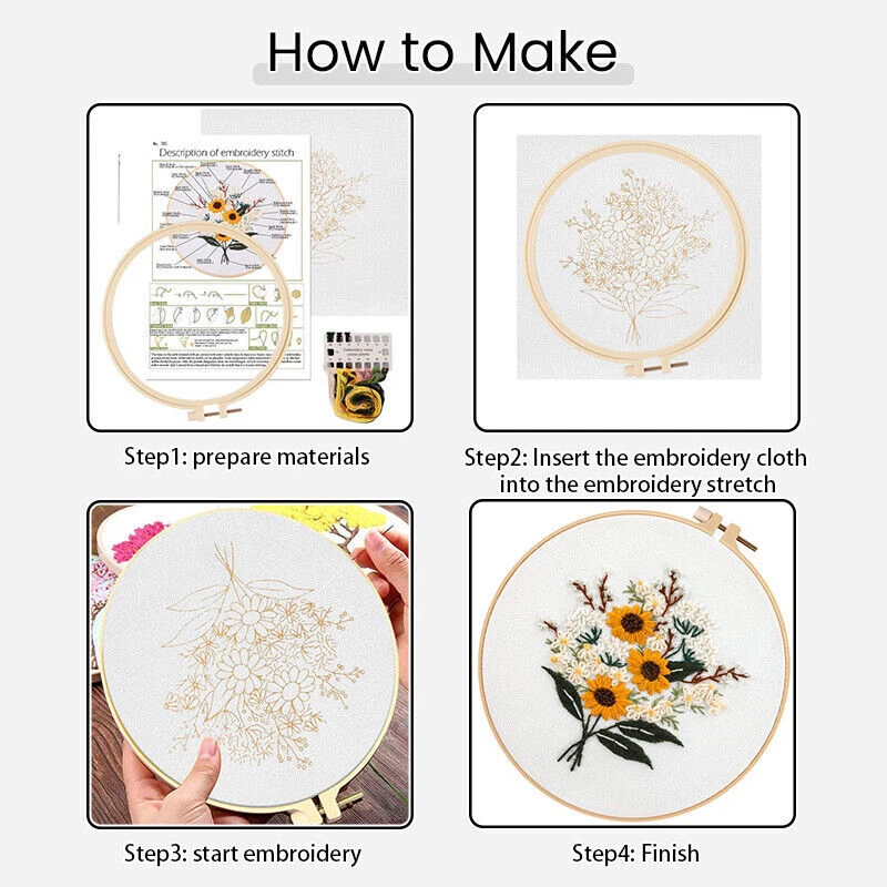 Best Choice for Beginners: This simple embroidery kit has embossed patterns on the embroidery cloth, making it easy for beginners to learn how to use needle and thread. This cross stitch kit comes with instructions to help those new to needlepoint feel more comfortable and confident with their creations. Bright Pattern Design: The patterns on the embroidery are well laid out and easy to follow, different styles of floral patterns and bright and realistic colors, this handmade embroidery is a suitable choice for anyone who pays attention to modern design. Handmade Gift: Handmade DIY embroidery kits make great holiday gifts for older kids, teens, adults, and for anyone who loves creating beautiful things or enjoys crafting, the floral embroidery kit will be a great addition The gift of meaning. Relax Yourself: Embroidery is a great hobby. You can release anxiety during the embroidery process. It takes time and patience to complete a set of cross-stitch, but you will have a strong sense of accomplishment and confidence after completion. Notice: 1. This is DIY product. 2. The embroidery shed need purchase separately. 3. Due to the light and screen difference, the item's color may be slightly different from the pictures. 4. Please allow 0.5-2 cm differences due to manual measurement. 5. Thank you for your kindly understandin. Include: 1. Embroidered cloth,size 29*29CM(11.4*11.4inch) 2. embroidered thread 3. embroidered needles