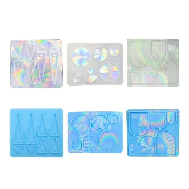 DIY Holographic Earring Resin Mold Light and Geometric Earring Pendant Features: and high silicone material, durable and flexible to use, good heat resistance, not easy to break. Small and lightweight, easy to make decorations and store,can making beautiful and send it to your friend as a Can work well with most casting materials like clay, resin, wax, clay and more, add any materials like powders,sequins into the mold. Can be applied to make various like keychain,earrings,pendant,decoration tools. The finished product has different effects of refraction at different angles under sunlight. Specifications: Silicone Size: approx.8.2x11cm/3.23x4.33in,for detail sizes as pictures. Color: Blue, Transparent Optional Shape: Triangle, Round, Geometric Quantity: 1 Pc Package Includes: 1 x Silicone Mold note: Please allow 0-1cm error due to manual measurement. please make sure you do not mind before you bid. Due to difference between different monitors, the picture may not reflect the actual color of the item.