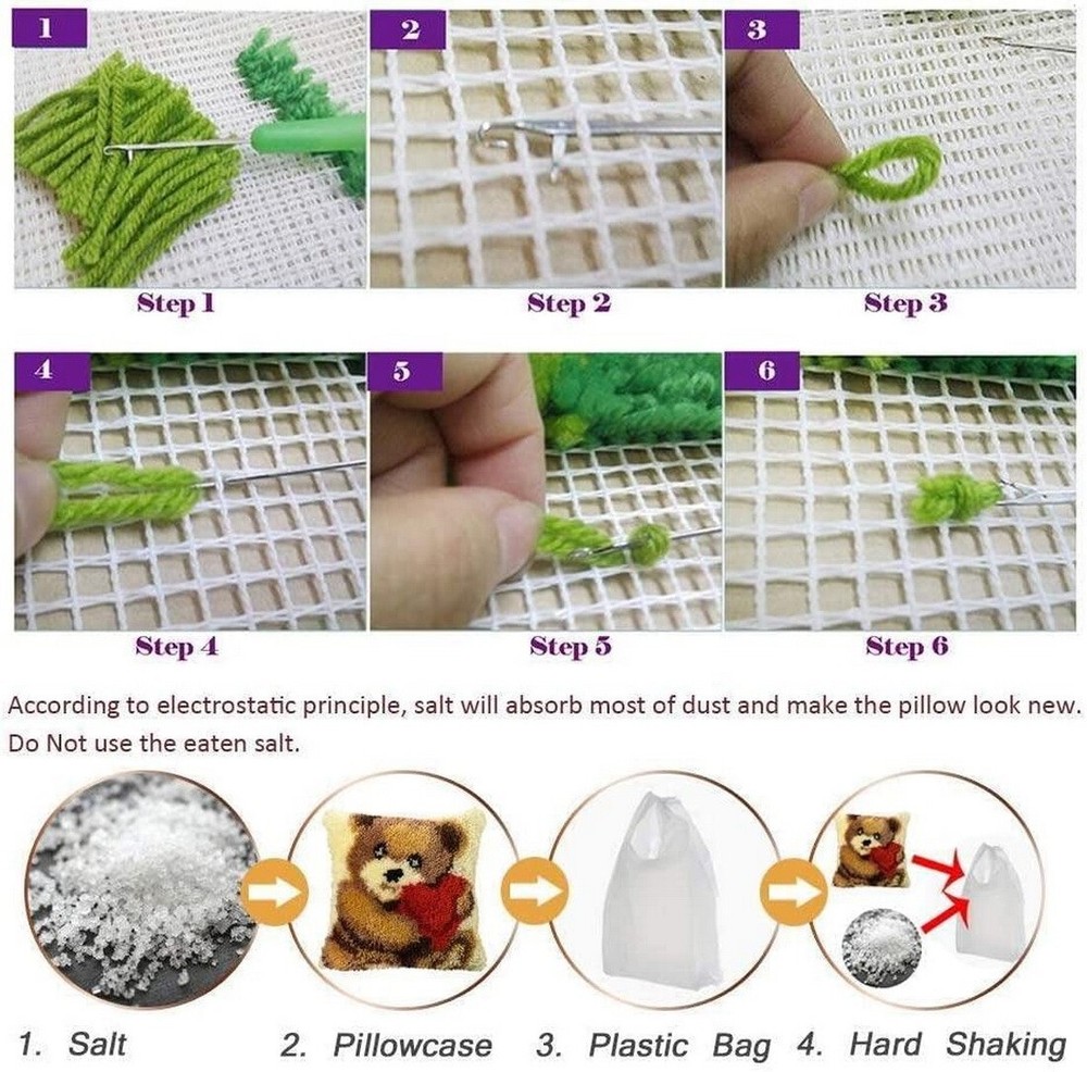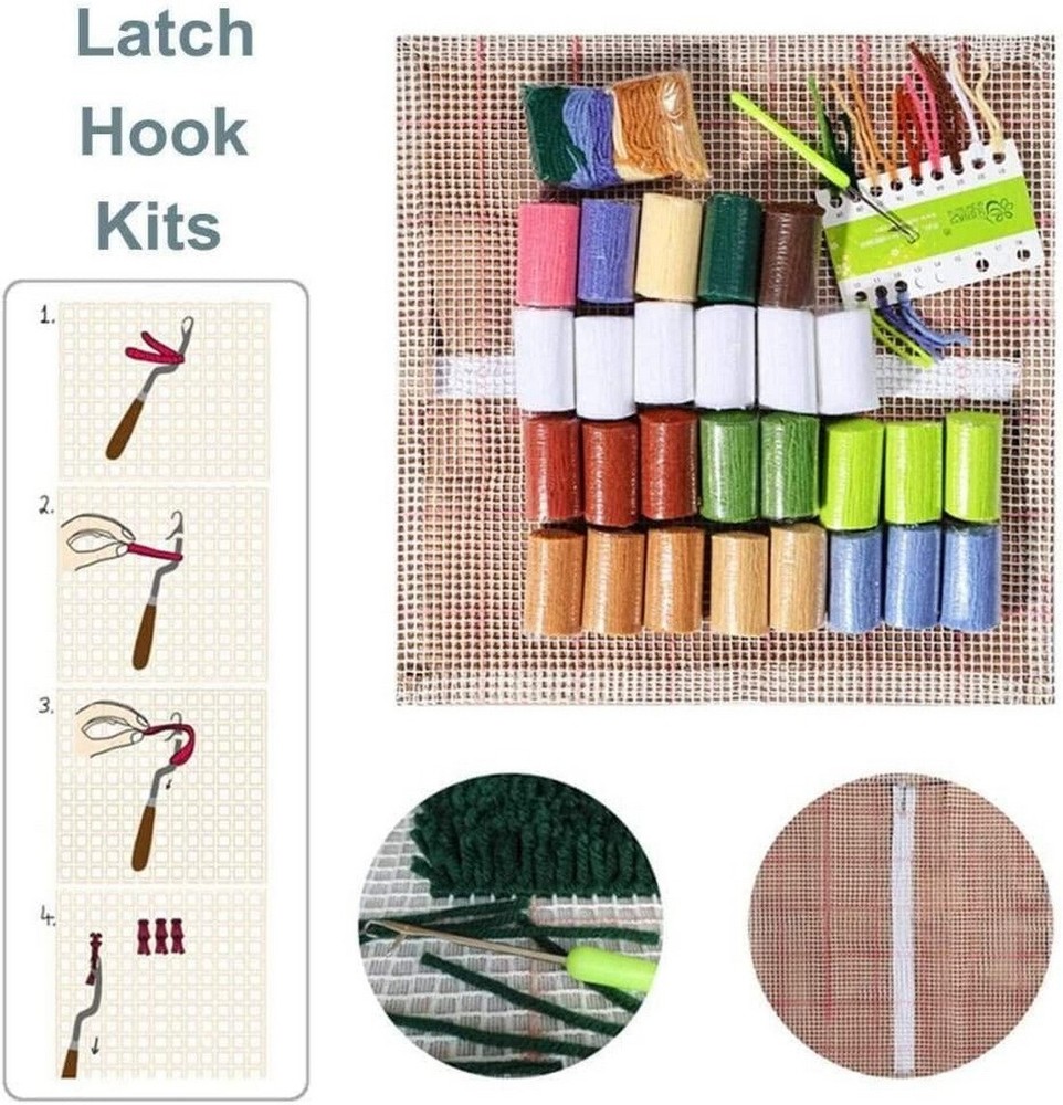 Hook Kits for Adults and Kids: This Pillow Cover size is 16.5*16.5 inches Kit Includes: high-quality printed canvas, one latch hook craft tool, pre-cut yarn pieces, detailed instructions and color printing, suitable for children and beginners.This kit contains a 50% polyester/50% cotton canvas Easy to Star:The color-coded canvas makes a easy start and ensures that you put it down and pick it up again .The possibilities are astounding Family Activity: Latch hook kits is a simple and easy to learn handicraft kit, you can invite anyone to do handicrafts together, suitable for children over 8 years old or adults. Enjoy the process of handcrafting together, find inner peace, relax body and mind, and improve hands-on skills Home decoration: The furry pillowcase is suitable for placing anywhere in the home, decorating sofas and seats, adding a unique color to your home