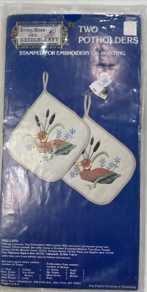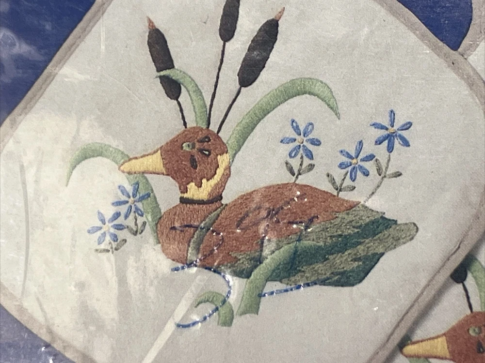DIY Potholders Mallard Stamped Embroidery Painting Craft Kit Duck Made in USA To upcycle, I reuse shipping material as often as possible. Buy more from my store and save on shipping.
