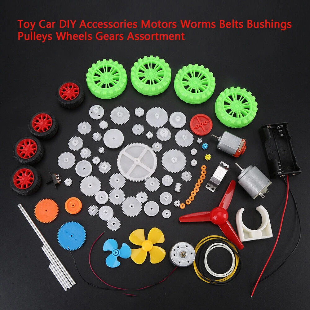 DIY Toy Car Kit with Motors, Gears, Wheels, Belts, Pulleys, Bushings & Accessories