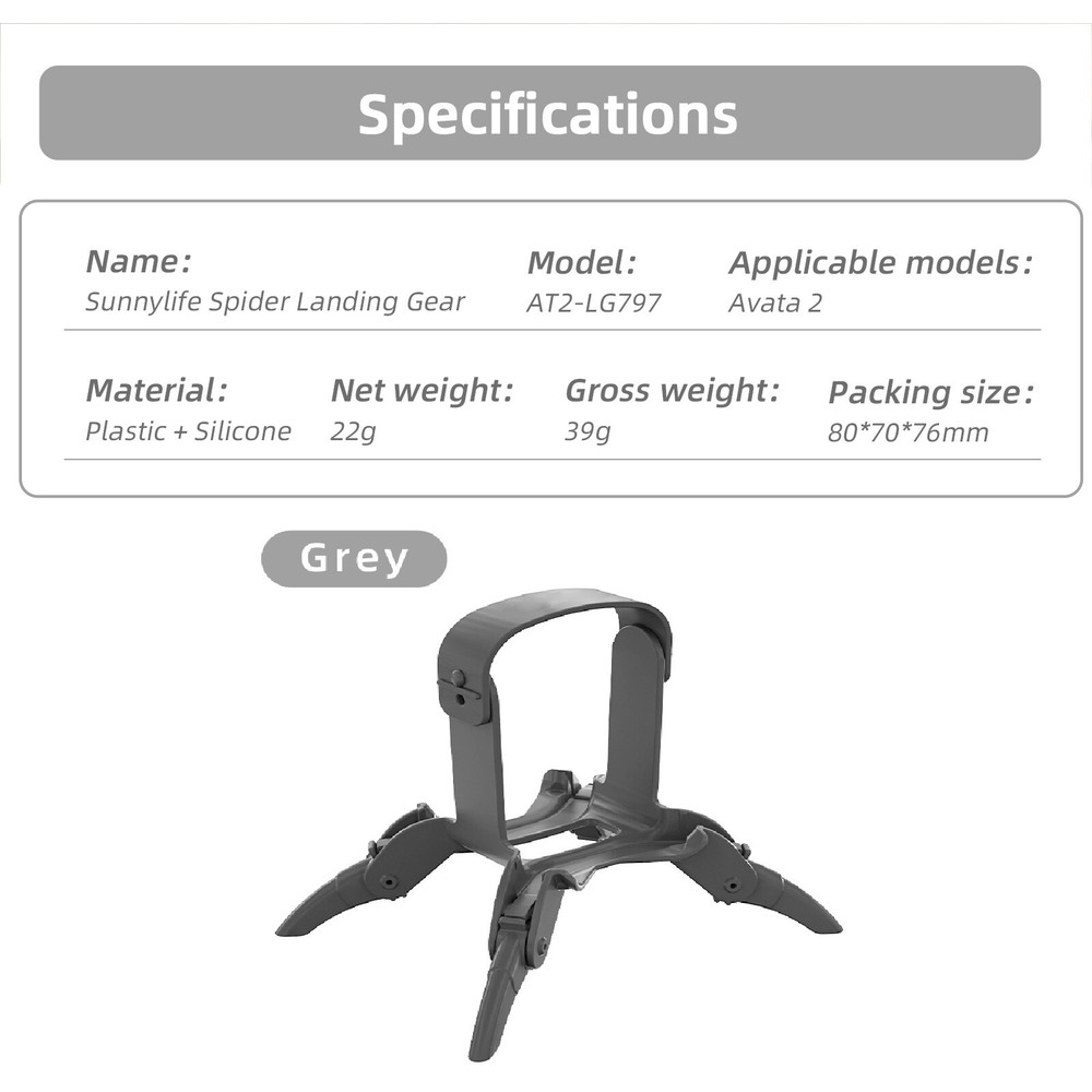 Product Description Landing Gear Heighten Holder Spider Bracket For DJI Avata 2 Drone Accessories/ Features: Effective height increase, Greatly increase the spacing between the fuselage and the ground, effectively prevent ground debris from damaging or dirtying the fuselage, sensors, etc. during takeoff and landing. Three-speed height adjustable, Ratchet structure, adjustable three height increase heights to meet your different needs. Doesn't affect the turtle turning over, Adjust the kickstand to the third gear (25mm-41mm height increase), for Avata 2 can autonomously complete the turtle turn over. Precise molding, customized, does not affect the vision system and infrared sensor at the bottom of the body in any way. External eight structure tripod, stable landing and take-off again upgraded, give you a steady sense of security. Foldable tripod, portable storage, easy to travel. Specifications: Name: Folding Booster Stand Material: Plastic + Silicone Color: Gray Package Size: 80*70*76mm Suitable for: For DJI Avata 2 Package include: 1*Landing Gear Shipping Returns Contact Us Payment 1. Items sent from US warehouse. 2.Receiving time = Processing time + Shipping time 3. Processing Time: Around 1-2 business Days 4. Shipping Time: 3-5 business day it may have a little delay during some holiday (such as Christmas),any problem ,please feel free to contact 1. 30 days warranty from the purchased date. Please contact us via email before returning the defective item. 2.Our warranty does not extended to any product that are physically damaged or that are not under normal operating conditions as result of misuse or improper installation on the buyer/user's part. 3.Return items should include the original packaging and all accessories. buyers MUST contact us for the returning address. 4.In all cases, buyers pay shipping fees at their own cost to return products for exchange or refund. We will be responsible for the postage of replacements. Refund will be made upon receipt of the returned item. Pls contact us if you have any problems,we will try our best to solve for you We accept all verified payment from eBay. Shipping 1. Items sent from US warehouse. 2.Receiving time = Processing time + Shipping time 3. Processing Time: Around 1-2 business Days 4. Shipping Time: 3-5 business day it may have a little delay during some holiday (such as Christmas),any problem ,please feel free to contact Returns 1. 30 days warranty from the purchased date. Please contact us via email before returning the defective item. 2.Our warranty does not extended to any product that are physically damaged or that are not under normal operating conditions as result of misuse or improper installation on the buyer/user's part. 3.Return items should include the original packaging and all accessories. buyers MUST contact us for the returning address. 4.In all cases, buyers pay shipping fees at their own cost to return products for exchange or refund. We will be responsible for the postage of replacements. Refund will be made upon receipt of the returned item. Contact Us Pls contact us if you have any problems,we will try our best to solve for you Payment We accept all verified payment from eBay. You may also like Watch Crystal Glass Sapphire Bubble Magnifier Calendar Lens Small Date Window 10.66 USD Replacement Laser Lens Deck for XBOX 360 DG-16D2S HOP-141 HOP-14X HOP-141X 7.34 USD Quick Genuine Leather Band Strap For Garmin Fenix 7 7X 6 6X 7S 6S Pro 5 5X Plus 14.29 USD 3.49 USD New Industrial USB To RS485 Converter Upgrade Protection RS-485 A Connector 11.65 USD 2 Pac Watch Hand Remover Presto Tool Repair Plunger Type Hairspring Collect 13.08 USD Green Low-Noise Quick-Release Propellers 8331F For DJI Mavic PRO Platinum Drone 14.95 USD powered by