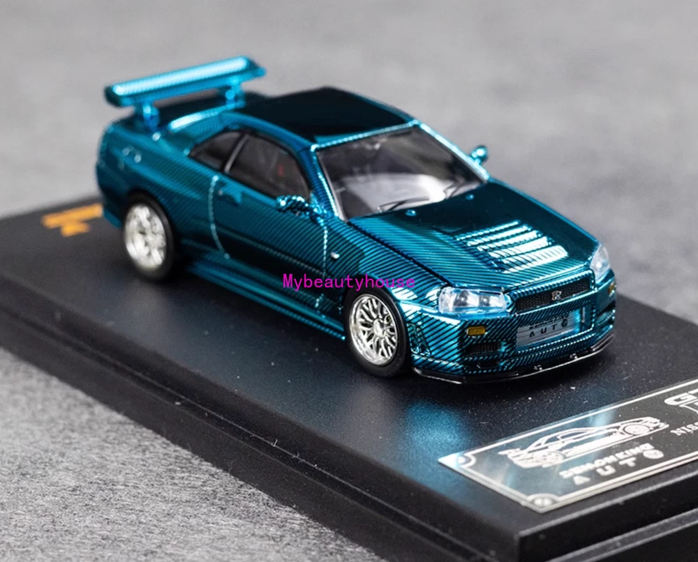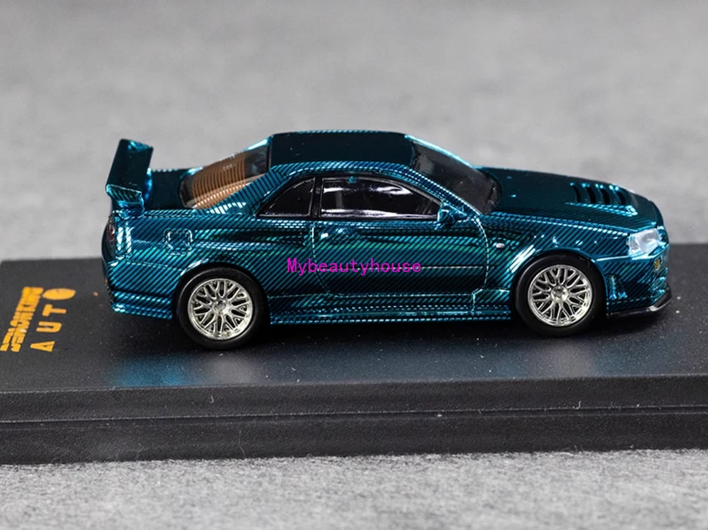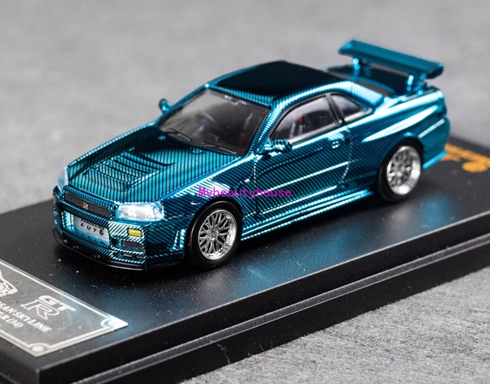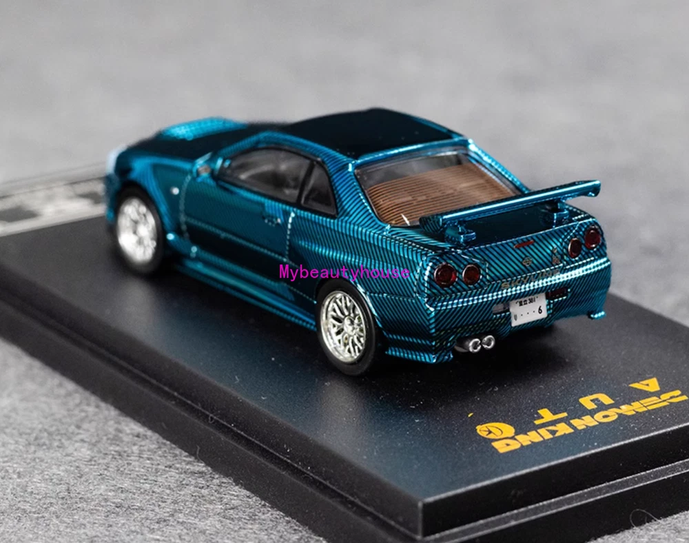 DK 1:64 Blue Carbon Skyline GTR R34 Racing Sport Model Diecast Metal Car