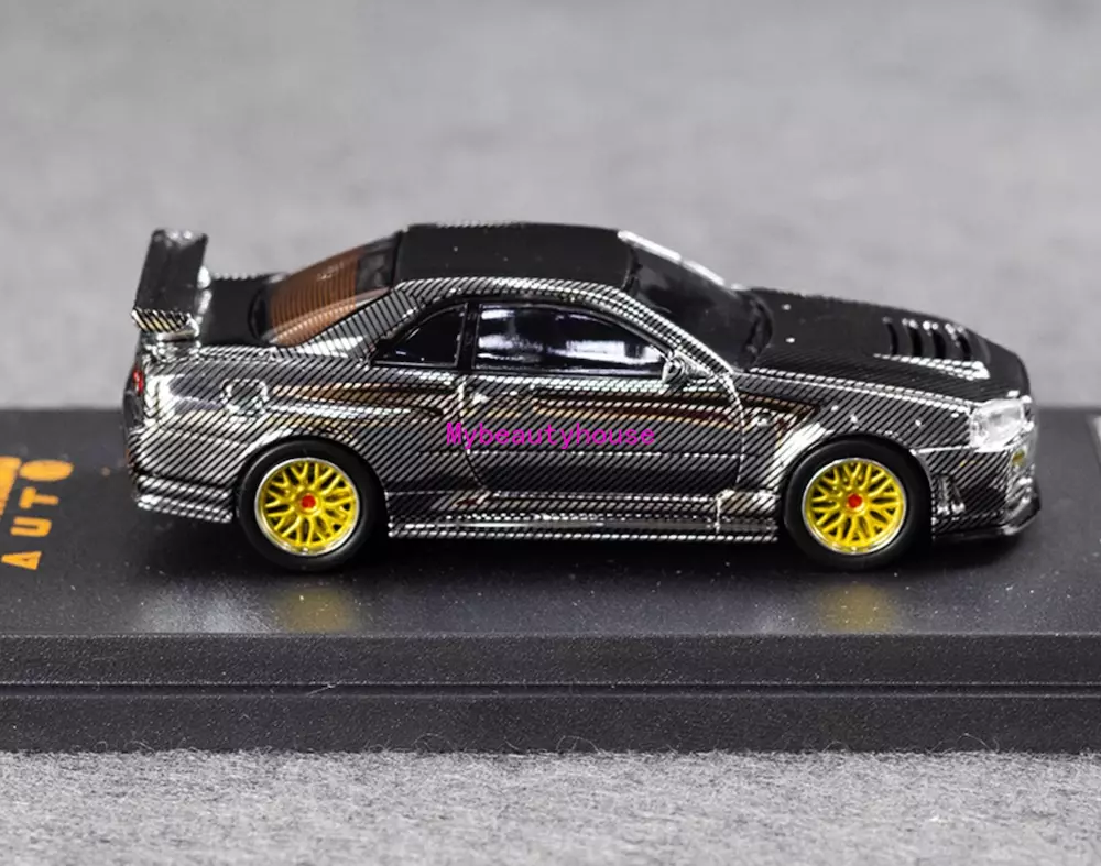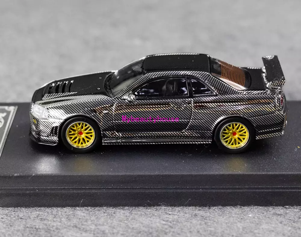 DK 1:64 Silver Carbon Skyline GTR R34 Racing Sport Model Diecast Metal Car