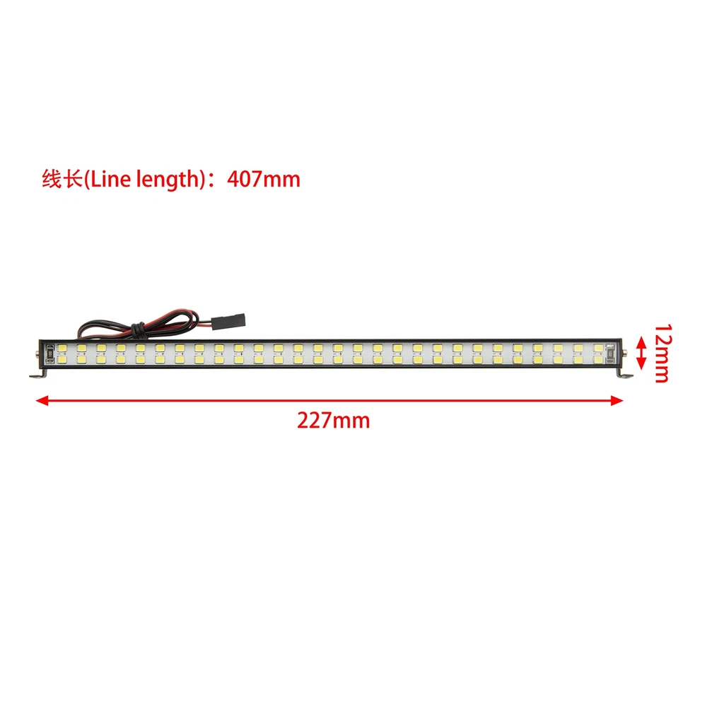 Description: 1.Using high-quality aluminum alloy CNC machining,exquisite workmanship. 2.56 LEDs provide ultra-high brightness for greater fun when driving at night. 3.Easy to install. It can be installed with the roof mounting bracket. Provide JR connector, which can be directly powered on the receiver. 4.Suitable for Axial SCX6 JLU Wrangler. 5.The package includes: LED Light*1,Screw*1 set. High quality roof light bar with high brightness to extend the fun with RC even after sunsets. Awersome add-on for Axial SCX6 Jeep JLU Wrangler Trail Honcho 4WD RTR 1/6 RC Crawlers. Made of aluminum alloy for greater durability and hardness, CNC machined with exquisite appearance. Comes with light mount for easy installation and JR connector for getting power directly from receiver. Package includes 56 beads roof light bar, light mount, JR connector.