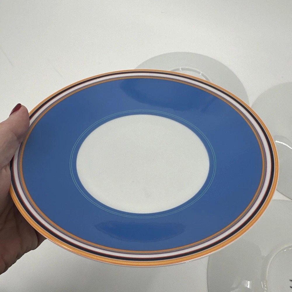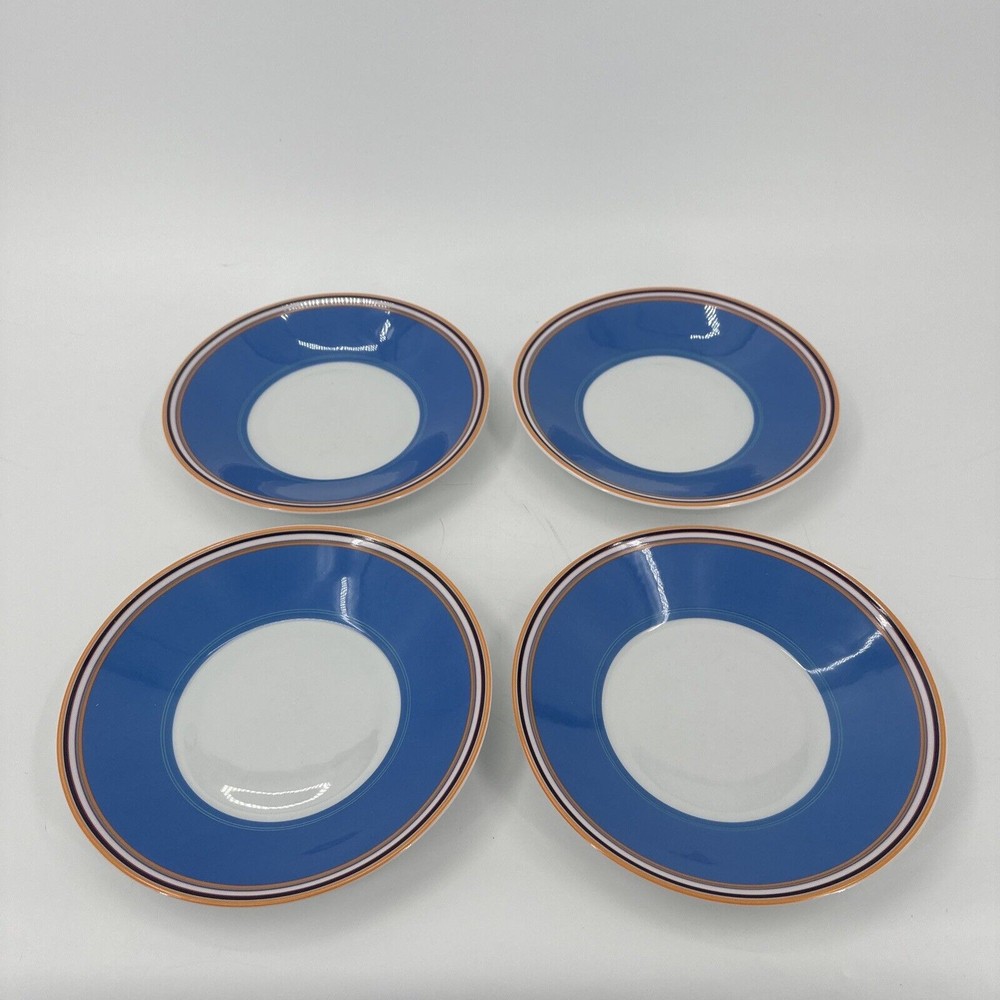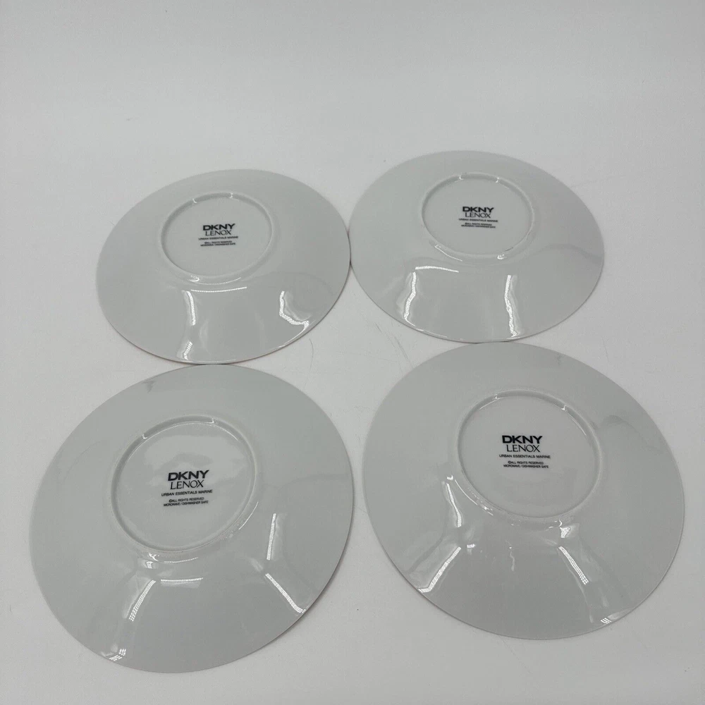 DKNY Lenox Urban Essential Marine Blue Set of 4 Fruit Bowls 8" x 1.25" Very good condition, normal wear and utensil marks, see all pictures for views. Ships out same day or next open postal day. Thank you for your purchase, we appreciate you!