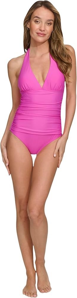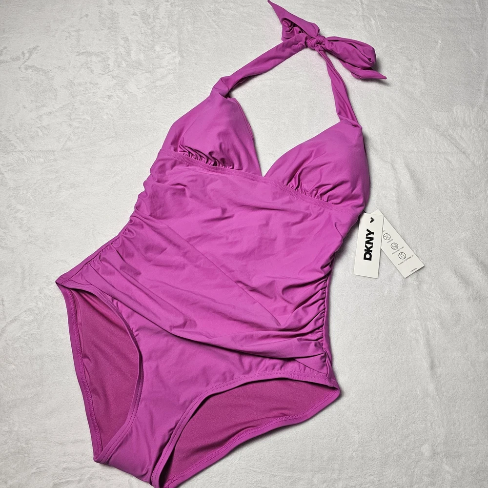 DKNY Womens Tie Back Halter Style One Piece Swimsuit Carnation Pink This DKNY Women's Swim One-Piece is a Halter Swim Suit with Tummy Control These bathing suits provide enough coverage for comfort while still flattering your figure, so you can focus on fun Poolside style: Perfect for any summer or swim occasion; wear to the water park, beach, pool, during water sports or on vacation * Condition: New with tag. * Colors may vary slightly different due to screen settings. * All our items come from smoke free and pet free environments. * Handling time: Same or next business day shipping.