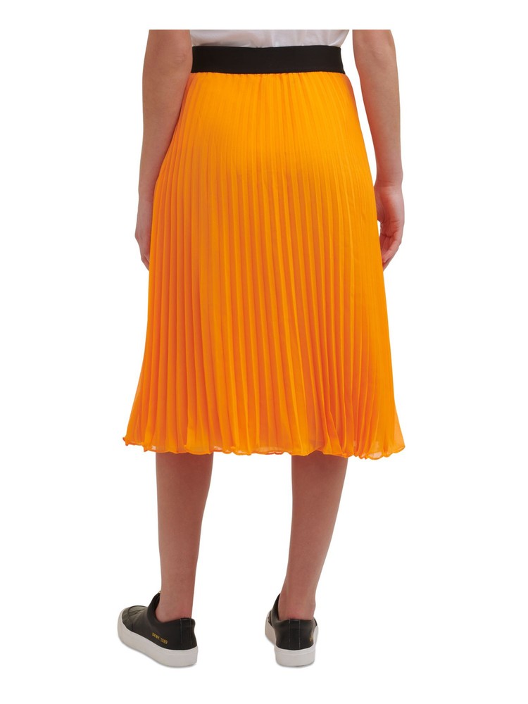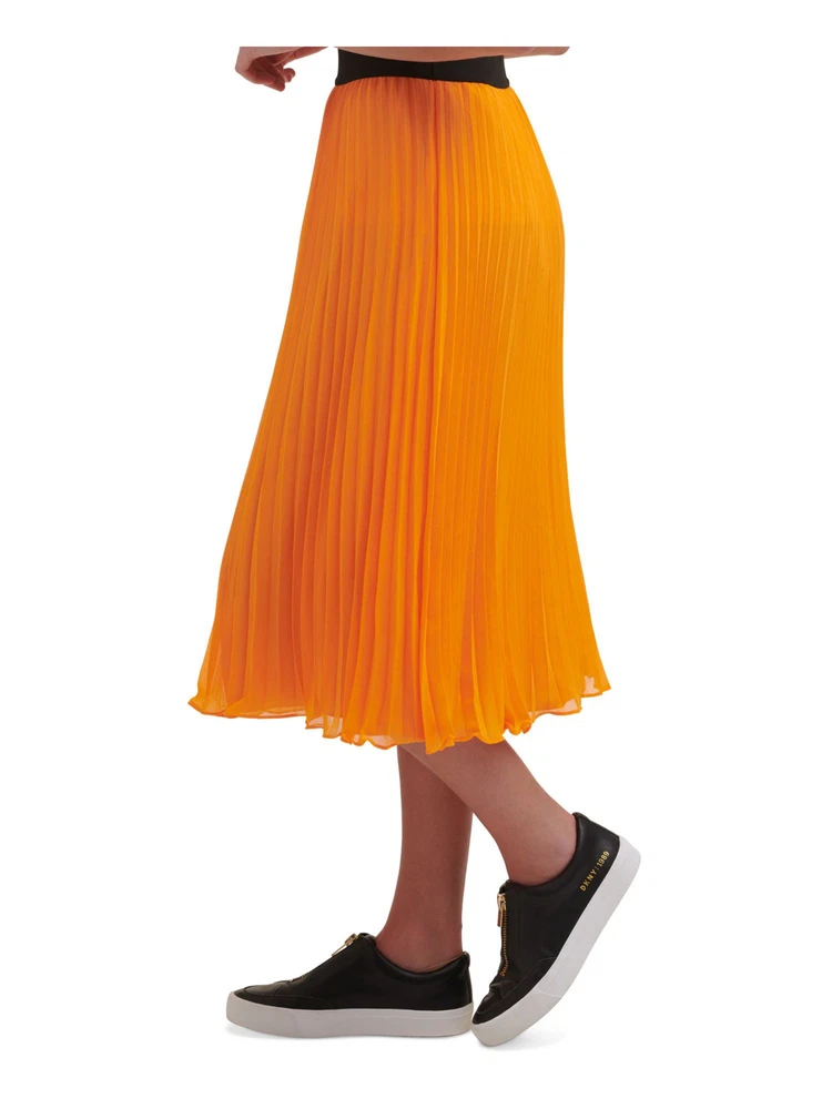 This DKNY skirt is a stylish steal! The vibrant orange color and flattering accordion pleats make it a standout piece. Despite the minor discoloration mentioned, the semi-sheer design and comfortable stretch fabric still give it a high-end look. Perfect for casual outings, it’s a great addition to any wardrobe. Dry clean only, but worth it for the chic appeal!