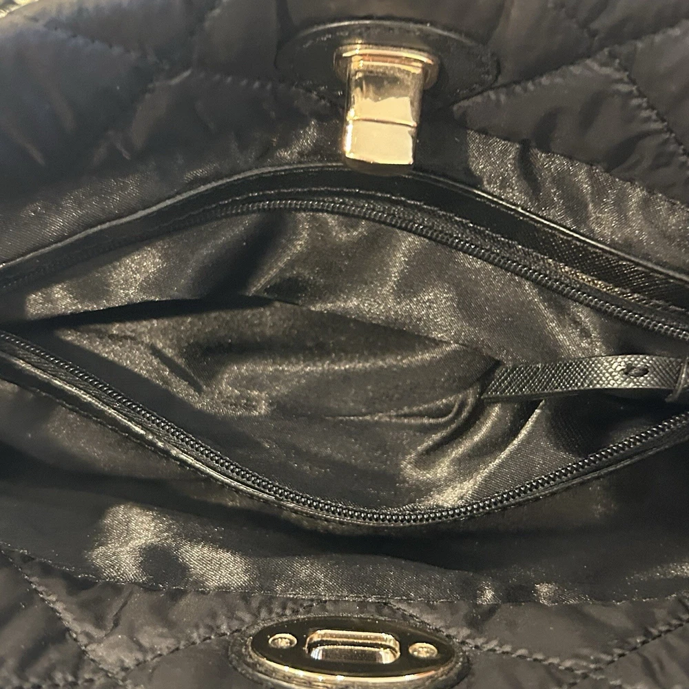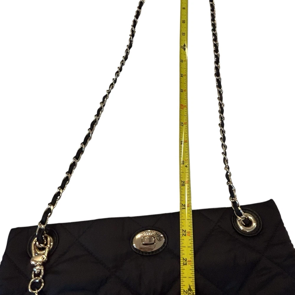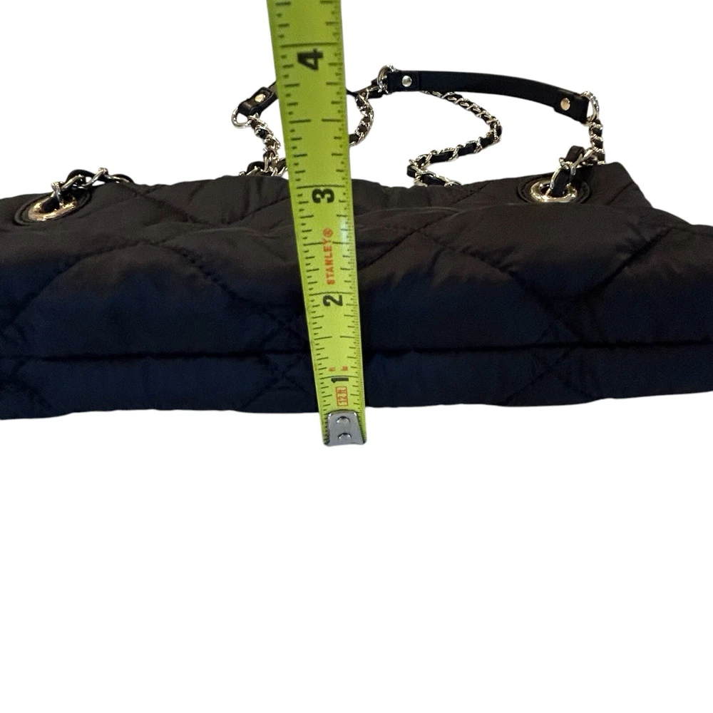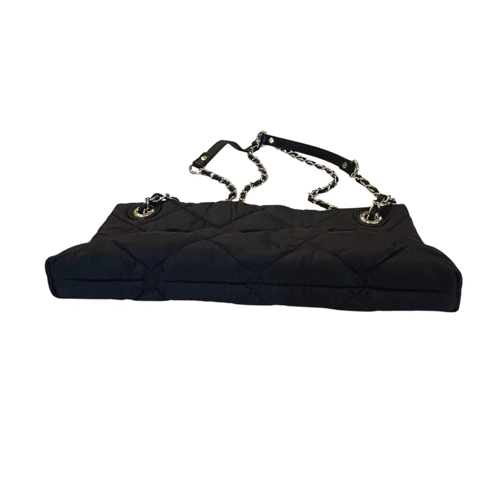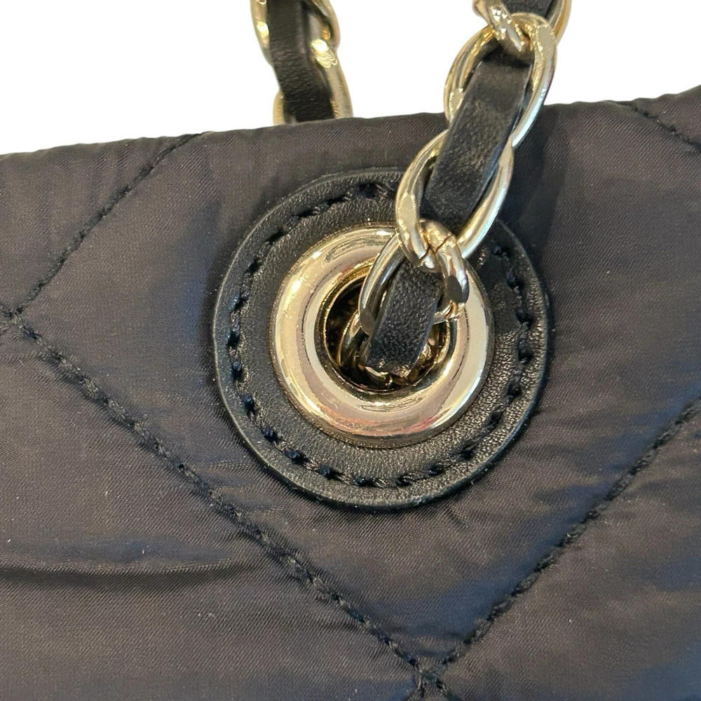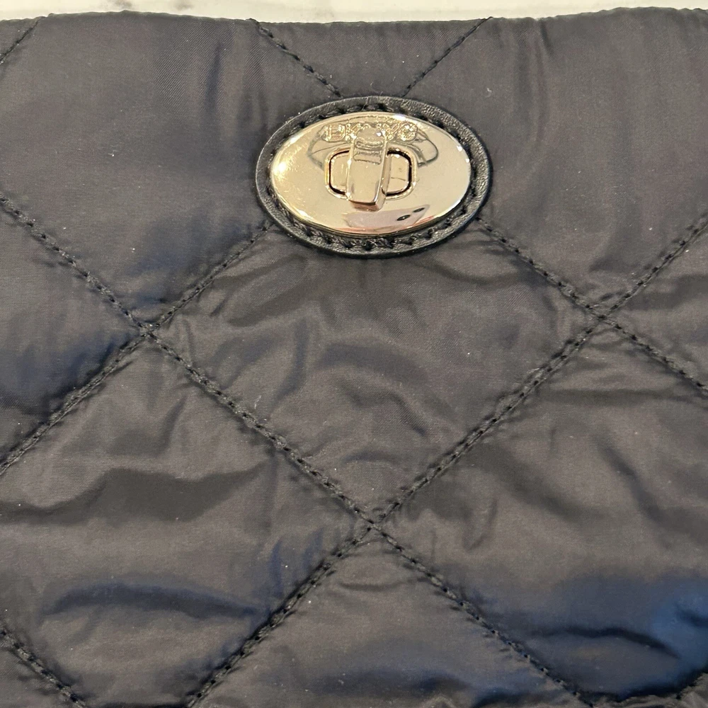 DKNYC Quilted Black Clutch Purse Gold Metal Chain Straps Evening Bag. Good pre-owned condition with normal wear, no tears or stains, see photos for details. Measurements in photos and are approximate. (111)