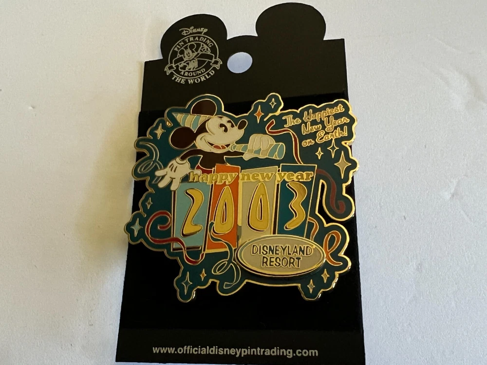 Thanks to Pinpics for the information below: Pin Stats Origin:DL - Disneyland California Limited Edition:5000 SKU Number:6380647 Original Price:$10.50 Released:2002 Retired/Sold out: Celebrating New Years 2003, this pin features a classic Mickey Mouse celebrating New Years, complete with a hat, blower and streamer. Says "The Happiest Place on Earth" "Happy New Year 2003" "Disneyland Resort". The "Disneyland Resort" is pin on pin. I do combine shipping add items to your shopping cart and it will automatically change shipping for most pins and will add only 50 cents for each additional pin in the same transaction. Please make any corrections to your address prior to payment. Address corrections will not be made after purchase. We will not sell pins that we suspect to be scrappers or fakes, however it is not possible to 100% guarantee authenticity on any pin obtained secondhand, as many of our pins are. We use our best judgement to determine authenticity of the pin and post pictures of the exact pin that you will be getting, so that you may also use your judgement. We have many happy customers. Please feel free to check out our positive feedback, and even our repeat customers. Payment & Shipping We accept all major credit cards through PayPal. No trades or offers will be accepted . Payments must be made immediately. Shipments are made only to the address on the order. Please make any corrections to your address prior to payment. Address corrections will not be made. We place the pin(s) in a heavy duty zip bag, and ship the pin(s) in a bubble envelope . We combine shipping costs. Shipping for additional pins is only $0.50 each. On Buy it now listings you must put the items into your cart and pay at once for the multiple item discount. Payment for your item(s) on Auctions is expected within 3 days of your purchase. We offer USPS First Class Mail within the Domestic US. Shipments occur Monday - Saturday within 48 hours of payment received from a confirmed Paypal address. Purchases made on a weekend or holiday will ship out on the next business day. Purchases will receive a tracking number to monitor your shipment. Please allow 24 to 48 hours for tracking information to update on the shipping company's website. This is normal; please do not be concerned if this is the case with your package. Returns All of our auctions are for the pin(s) shown in the pictures, on an "as is" basis. Due to a rising concern over people buying authentic pins and returning fakes, returns are only accepted if we make a mistake and send an incorrect item, not solely based on the correctness of our assessment of a pin's authenticity.