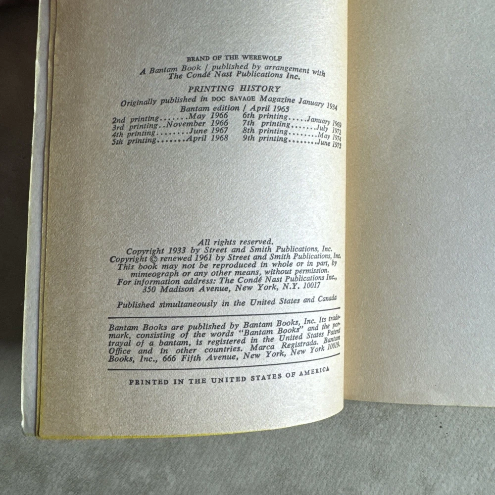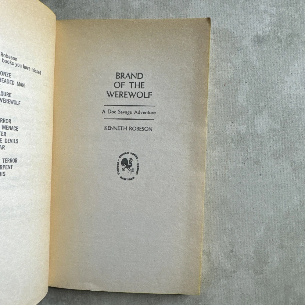 gtin13:n/aBook Series:Doc SavageISBN:n/aGenre:ActionAuthor:Kenneth RobesonBook Title:Doc Savage brand of the werewolfFormat:PaperbackVintage:YesPublication Year:1965Language:EnglishPublisher:Bantam BooksTopic:action