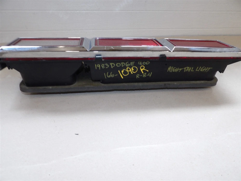 DODGE 400 1982-1983 RH PASSENGER RIGHT SIDE TAILLIGHT TAIL LAMP ASSEMBLY OEM DODGE 400 1982-1983 RH RIGHT PASSENGERS SIDE TAILLIGHT TAIL LAMP ASSEMBLY OEM VERY NICE CONDITION RH PASSENGERS SIDE VERY NICE CHROME AND LENS LIGHT SCRATCHES ON THE LENS DODGE 400 82-83 38810 Powered by SixBit's eCommerce Solution