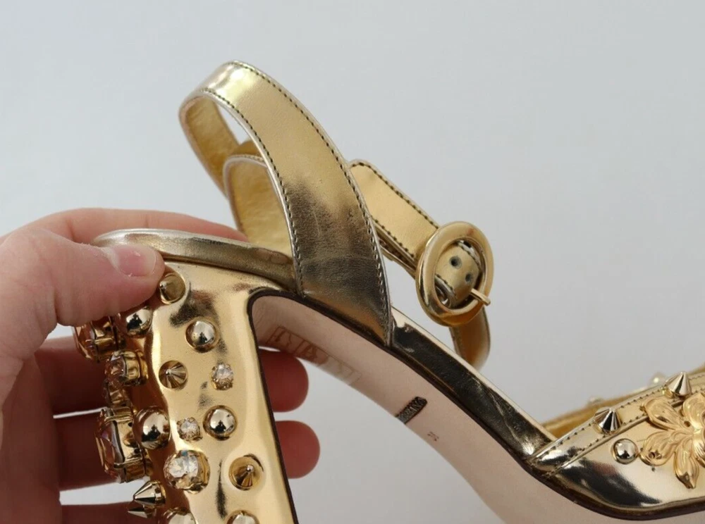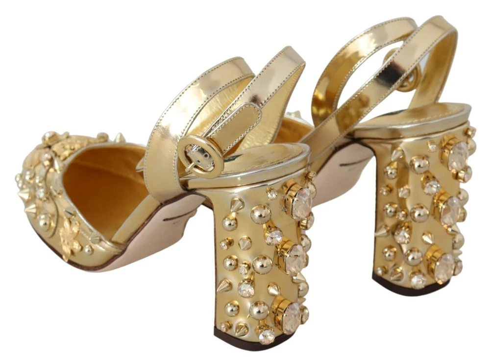 DOLCE & GABBANA Gold Stud Slingback Sandals EU37 US6.5 Luxury Heels