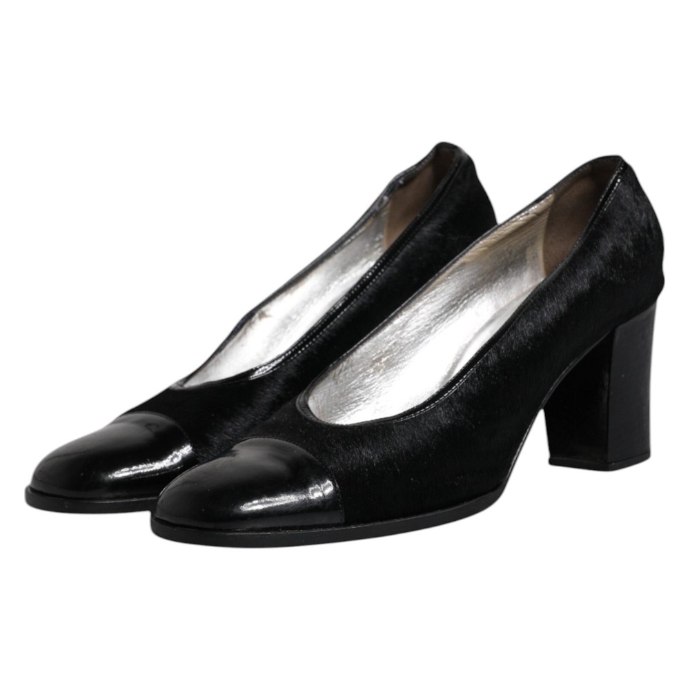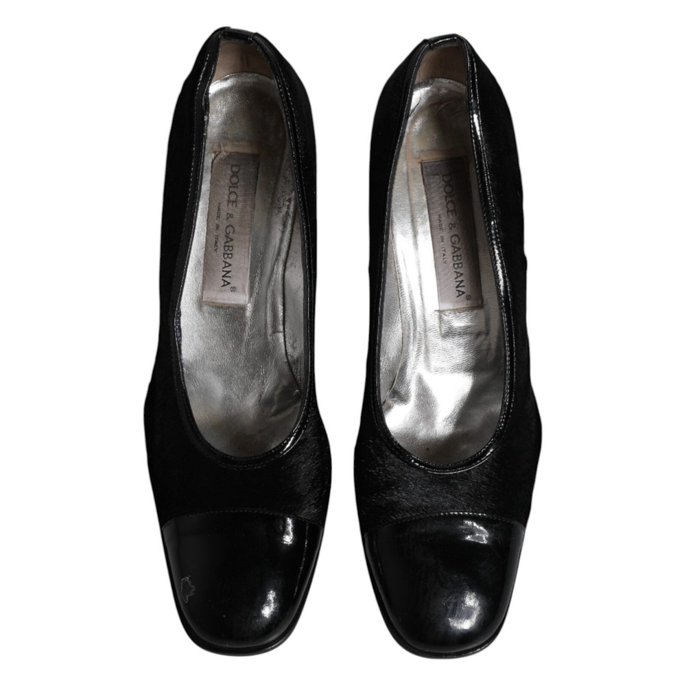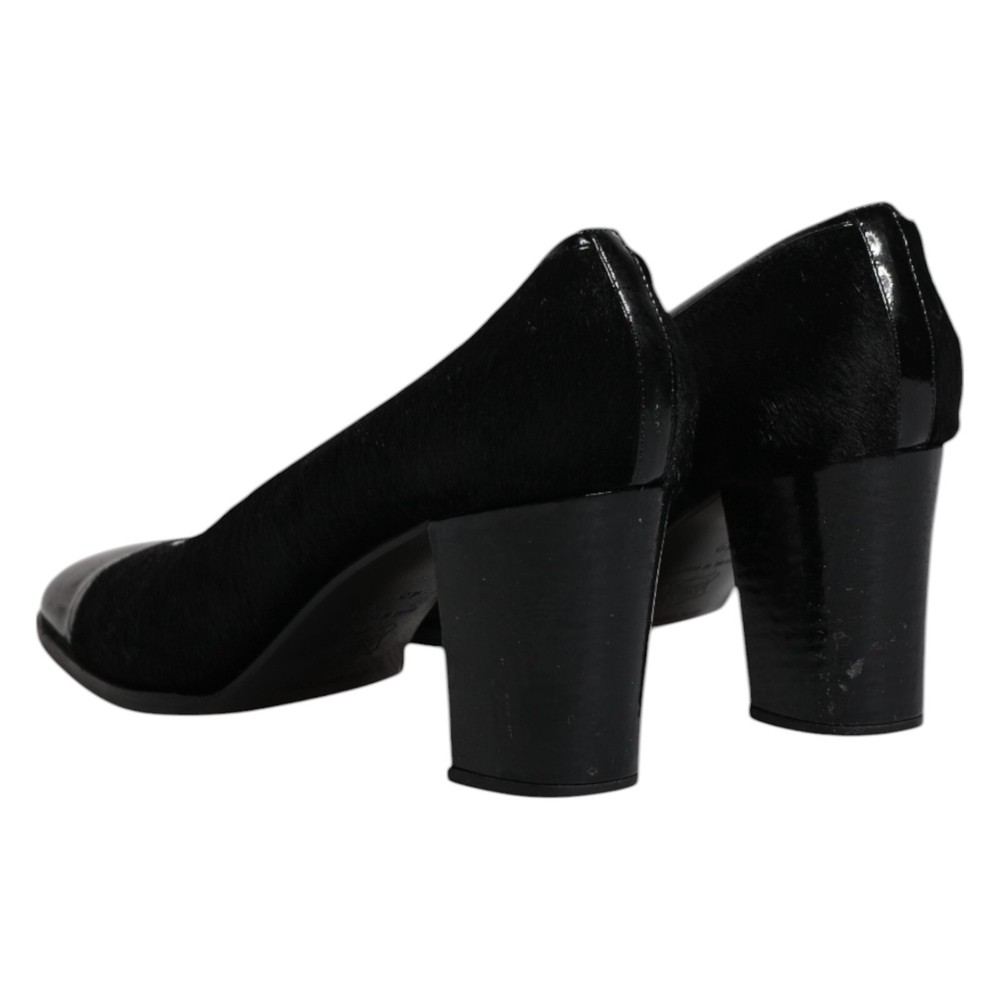 DOLCE & GABBANA Shoes Black Leather Block Heels Pumps EU40 / US9.5 RRP 1130usd