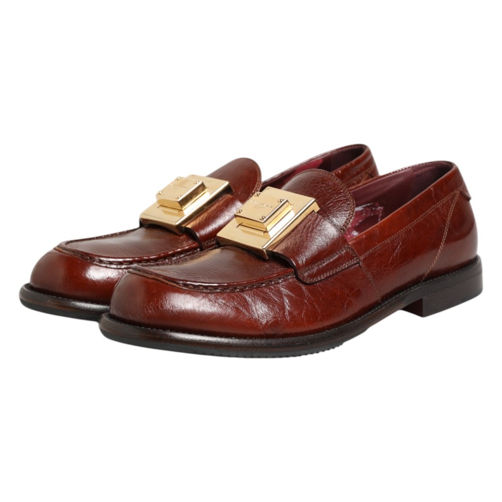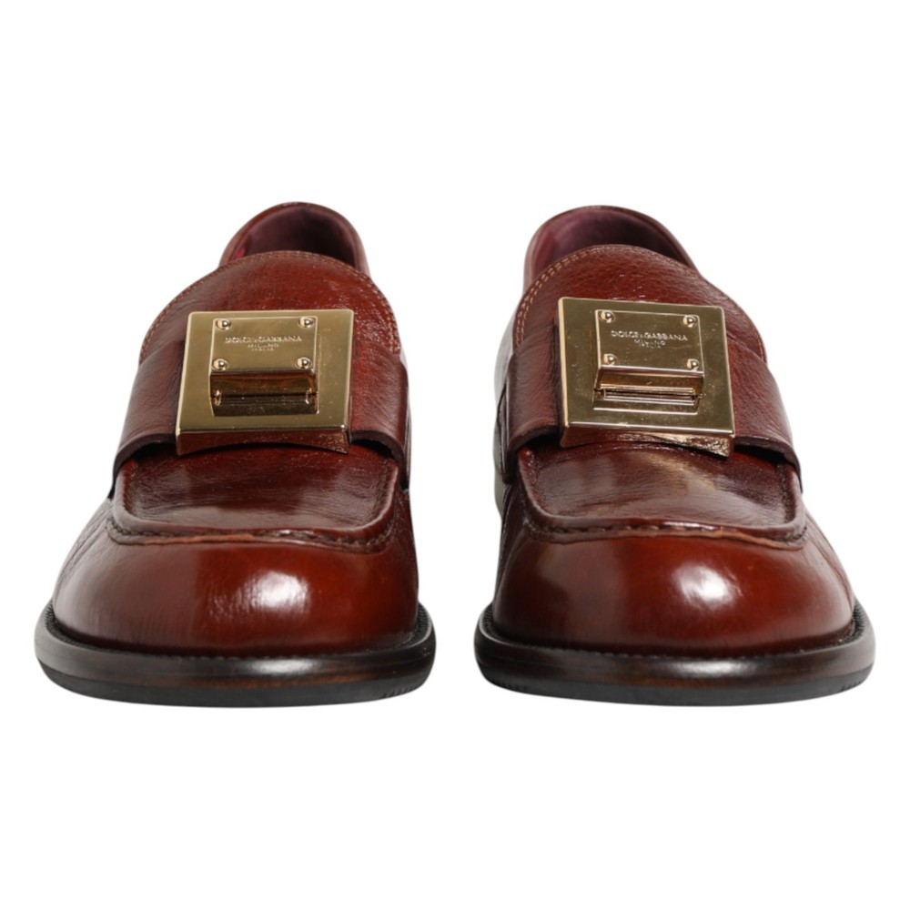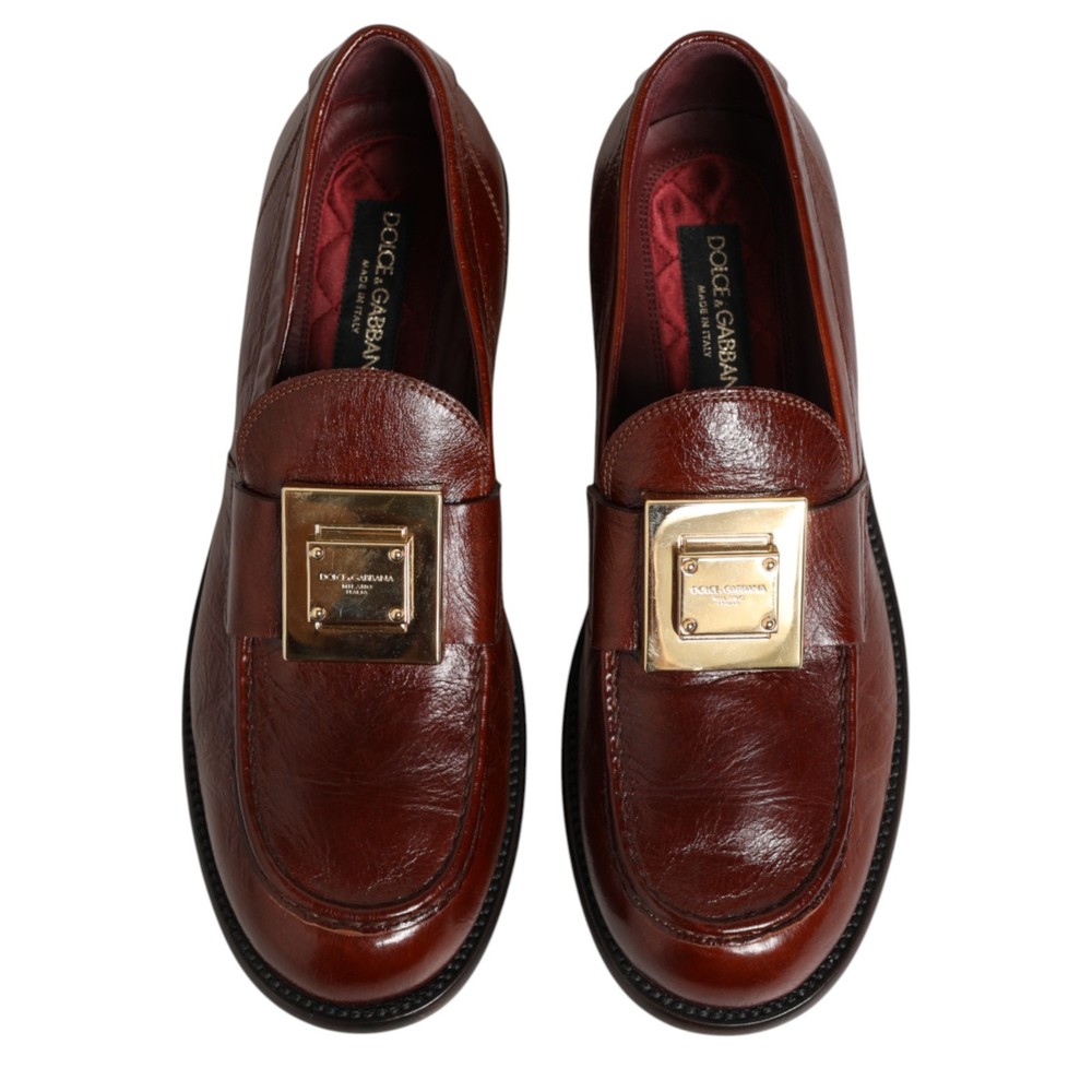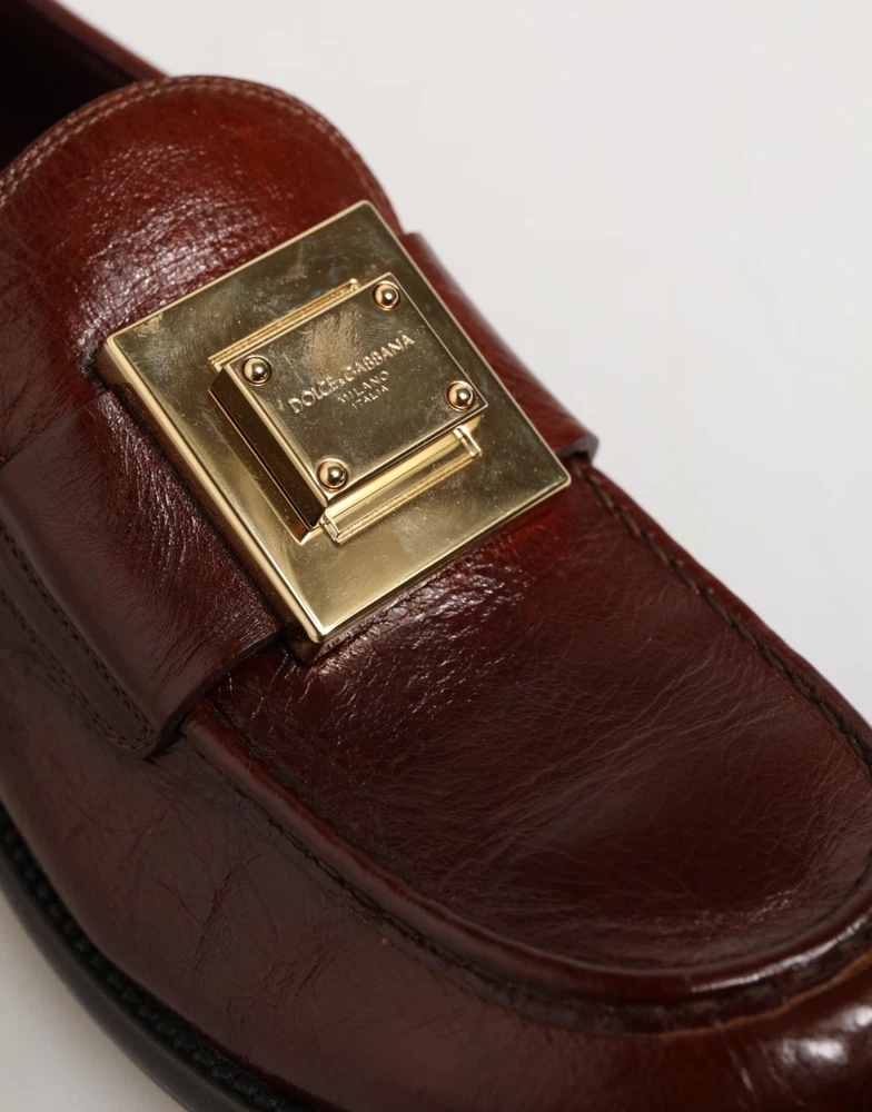 DOLCE & GABBANA Shoes Brown Leather Logo Slip On Men Dress EU41 / US8 1050usd