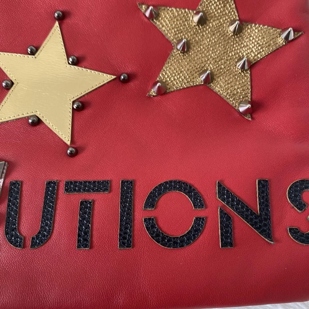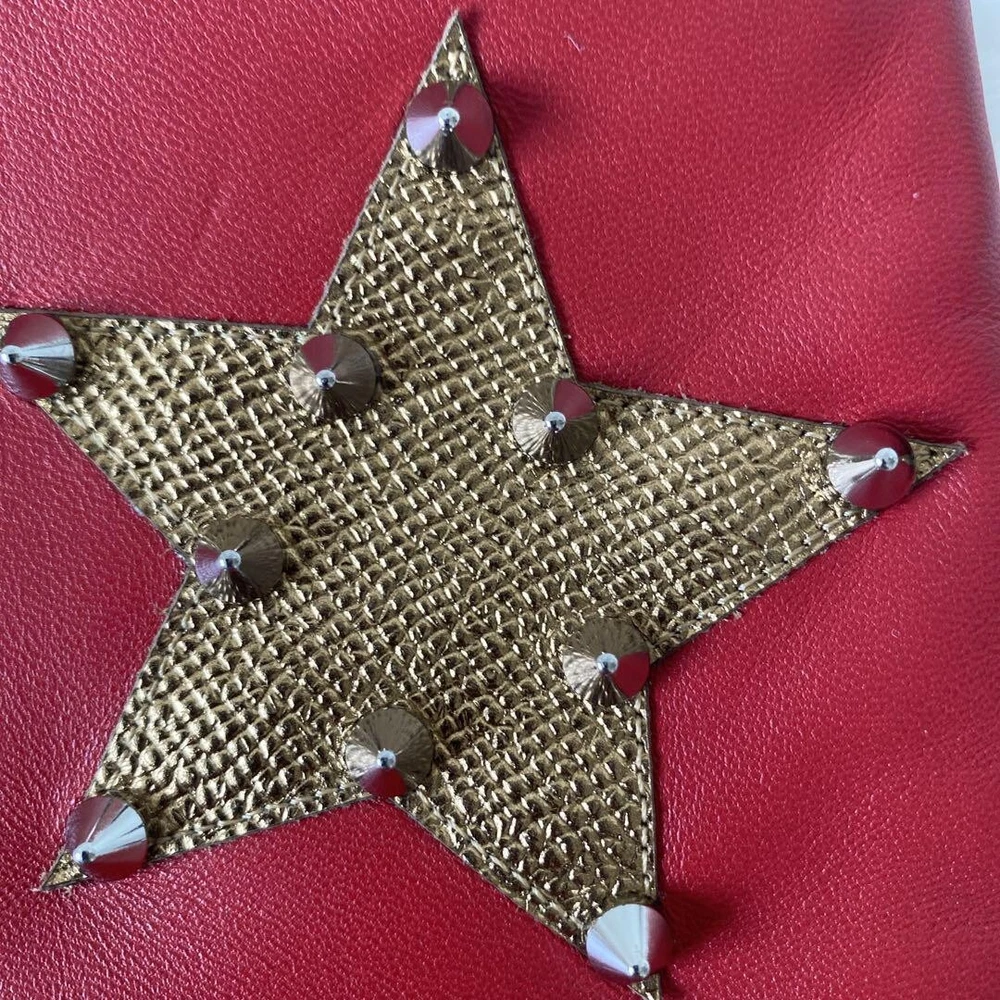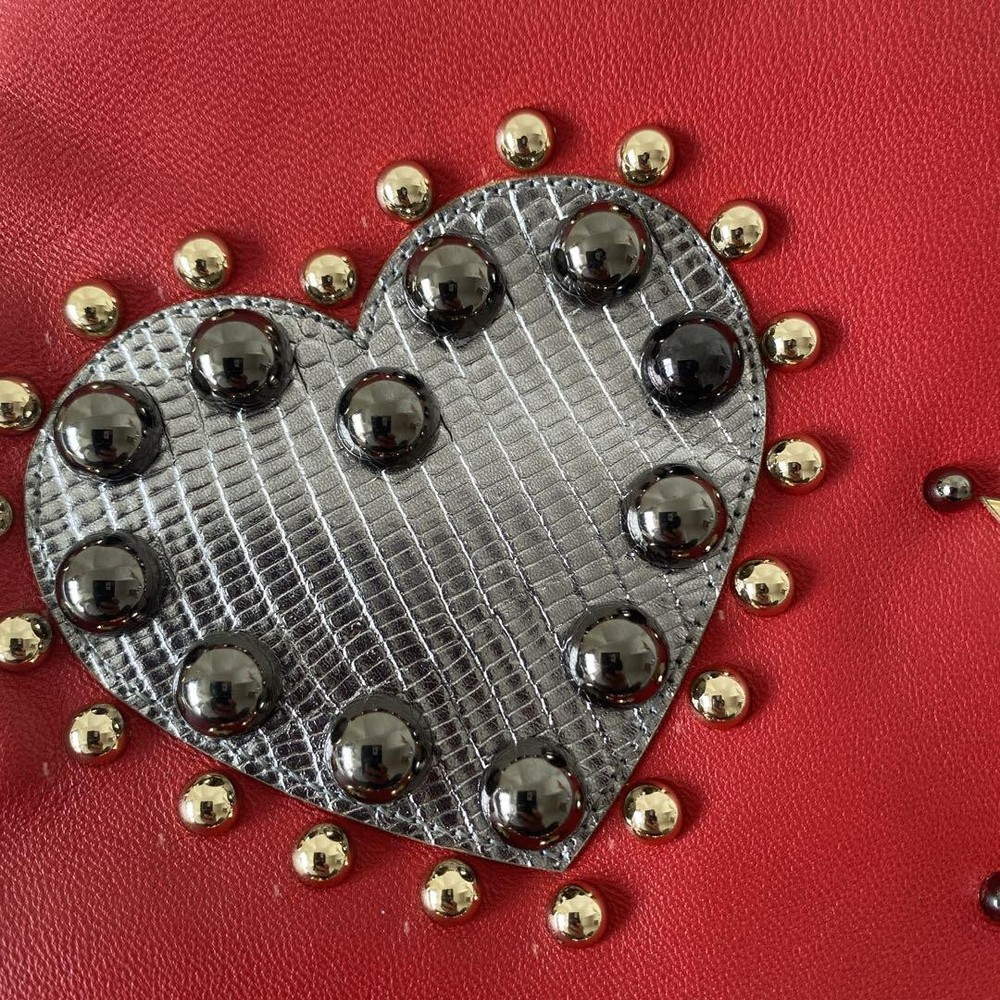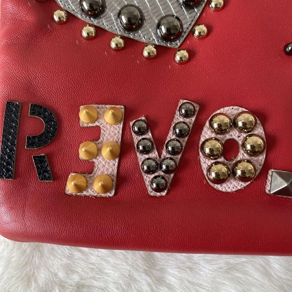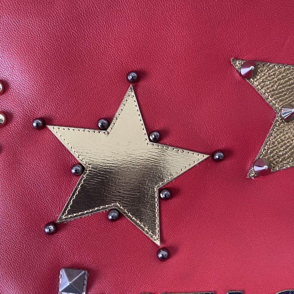 Absolutely love this clutch! The vibrant red leather with studs makes such a statement, and it's surprisingly spacious inside. Despite minor wear on the hardware, it's in fantastic condition and feels so luxurious. Perfect unisex design, and shipping was quick. A total steal for the price!