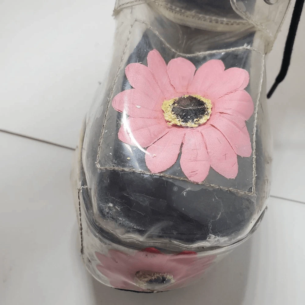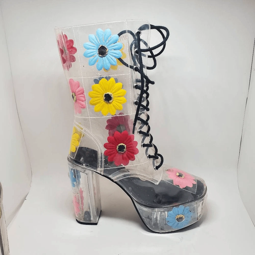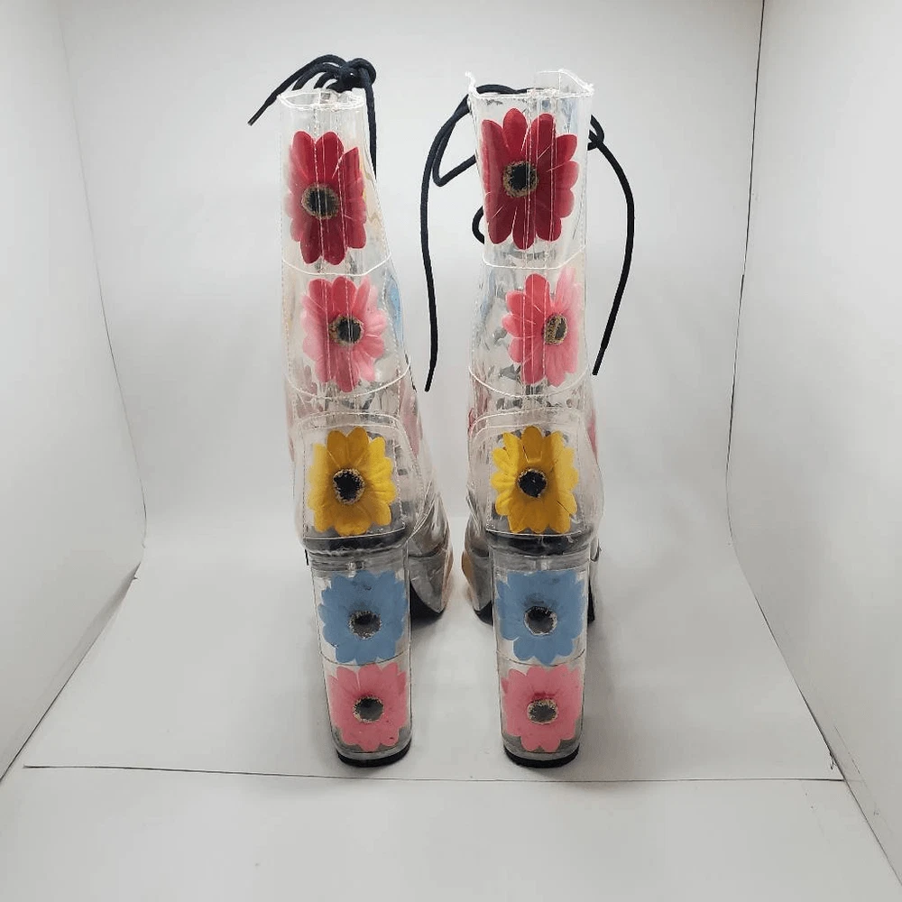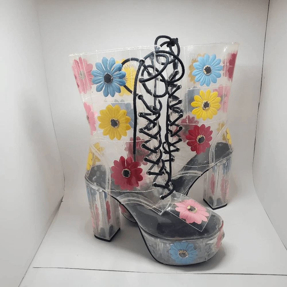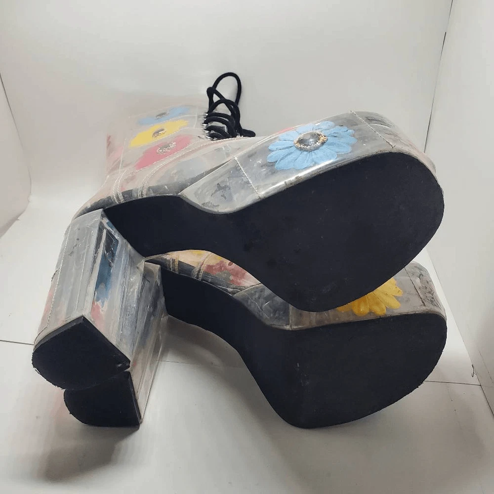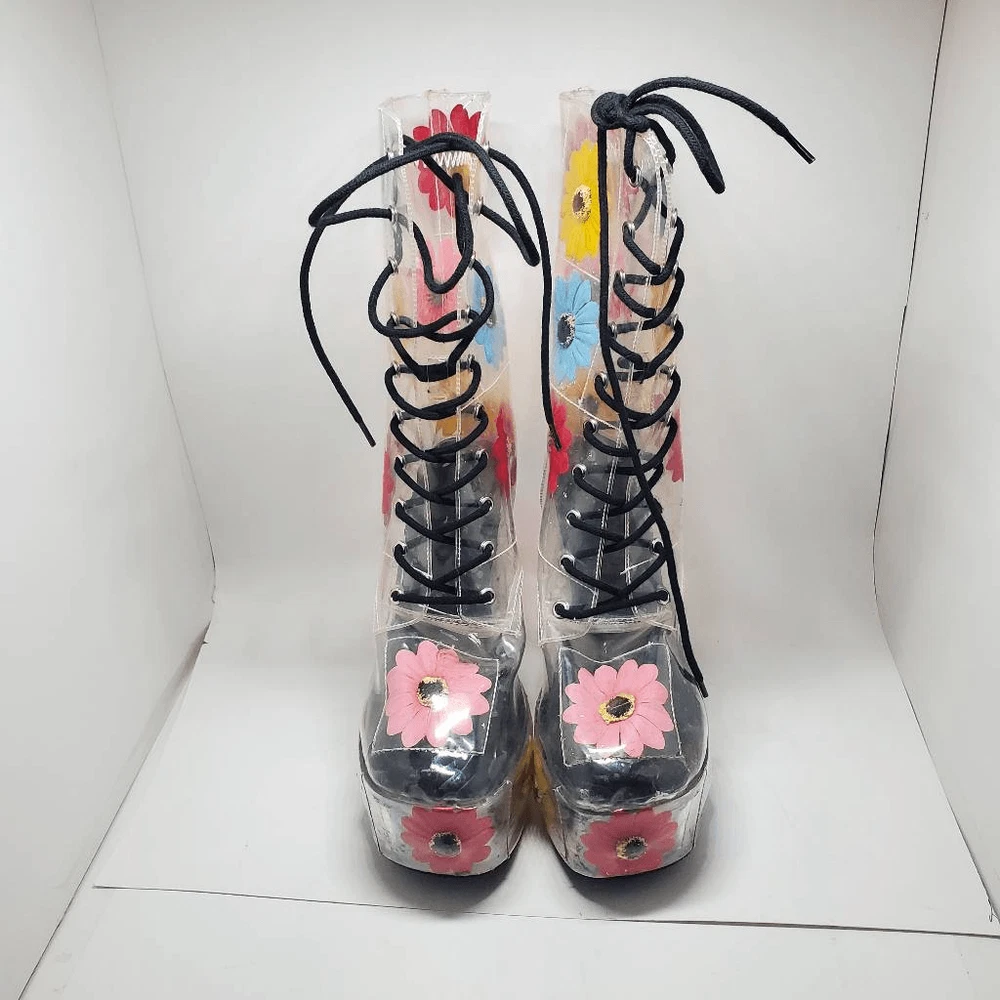 DOLLS Kill Y2K dELiA*s Get UR GROOVE ON FLOWER PVC PLATFORM LACE UP BOOTS 10