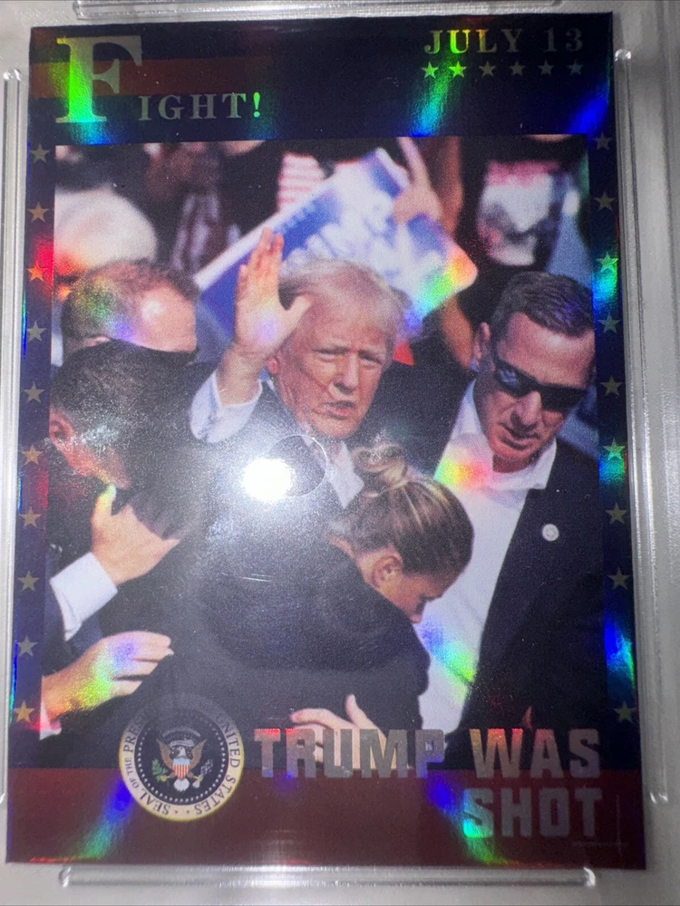 This official trading card features a rare photo of the 45th US President, Donald Trump, and is a must-have for any collector. The card is made of high-quality polyflex and card stock materials, with a standard size that makes it easy to store and display. The card is graded WCG 10, ensuring its authenticity and quality. It features the title "Assassination Attempt" and showcases the iconic character of Donald Trump. This non-sport trading card is an original, licensed reprint that was manufactured in the United States. It is a great addition to any collection and a perfect way to commemorate the presidency of Donald Trump.