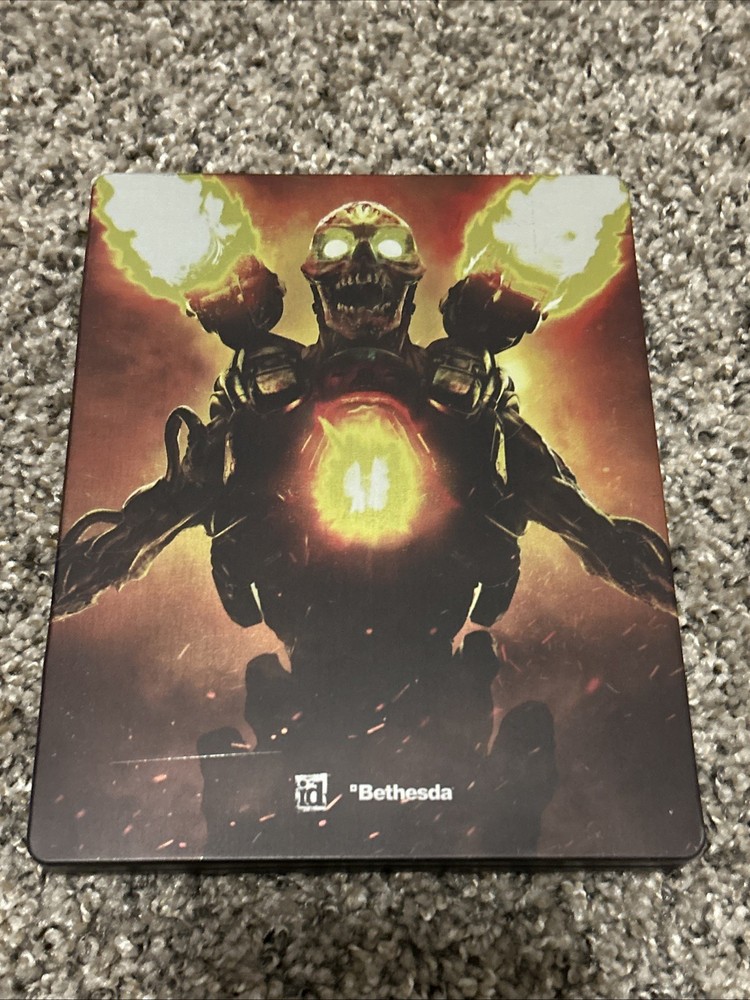 The product is a Steelbook Case and Inserts for the video game DOOM 2016 for PlayStation 4. The Steelbook Case contains additional inserts and is sealed, but does not include the actual game content. This collectible item is perfect for fans of the first-person shooter genre and those who enjoy the Bethesda Softworks published game. The product is shipped in a box for safe delivery.