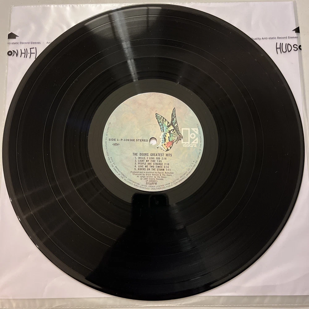 This is a must-have for any rock music fan! The Doors Greatest Hits from 1980 is a compilation LP that features their biggest hits from the 1960s. The vinyl record is in excellent shape and comes in a cardboard sleeve with an obi and insert. The 12" record has a speed of 33 RPM and is on the Elektra Records label. It was manufactured in Japan and is a great addition to any vinyl collection. Don't miss out on the chance to own this classic LP!