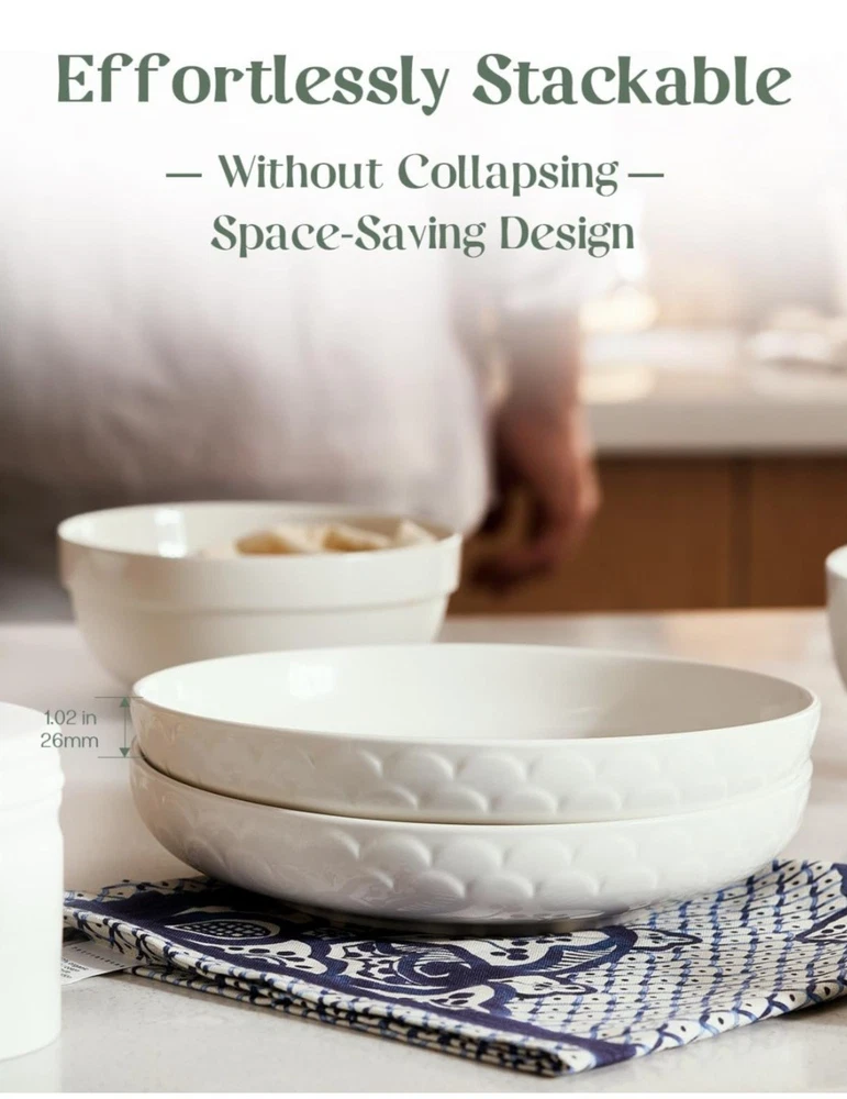 DOWAN Pasta Bowls, 54 oz Large Salad Serving Bowls, 10'' Plates Bowls Set of 4, White Ceramic Soup Bowls for Kitchen Meal Prep, Shallow Dishes Dinner Bowl Microwave Dishwasher Safe #15.11.25